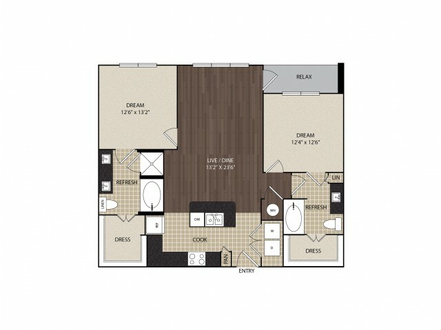 Modelo de apartamento: A4Desde $1,4851 Dormitorio, 1 Baño, 787 sq ftDisponible Ahora![]()