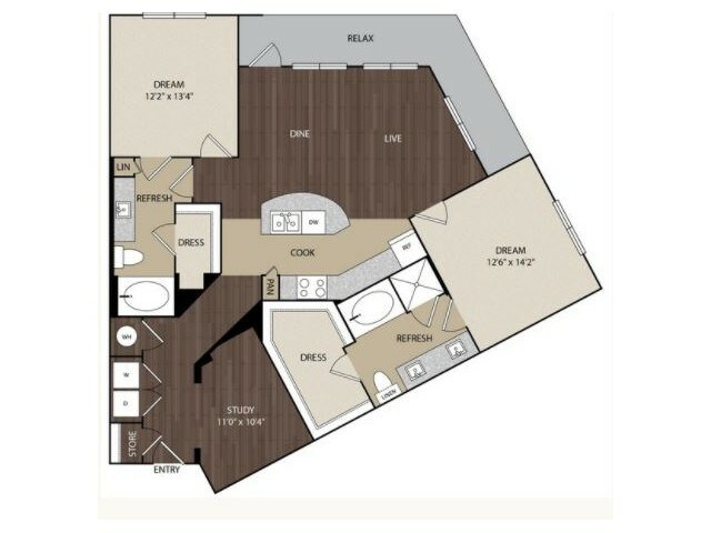 Modelo de apartamento: A3Desde $1,4451 Dormitorio, 1 Baño, 772 sq ftDisponible Ahora![]()
