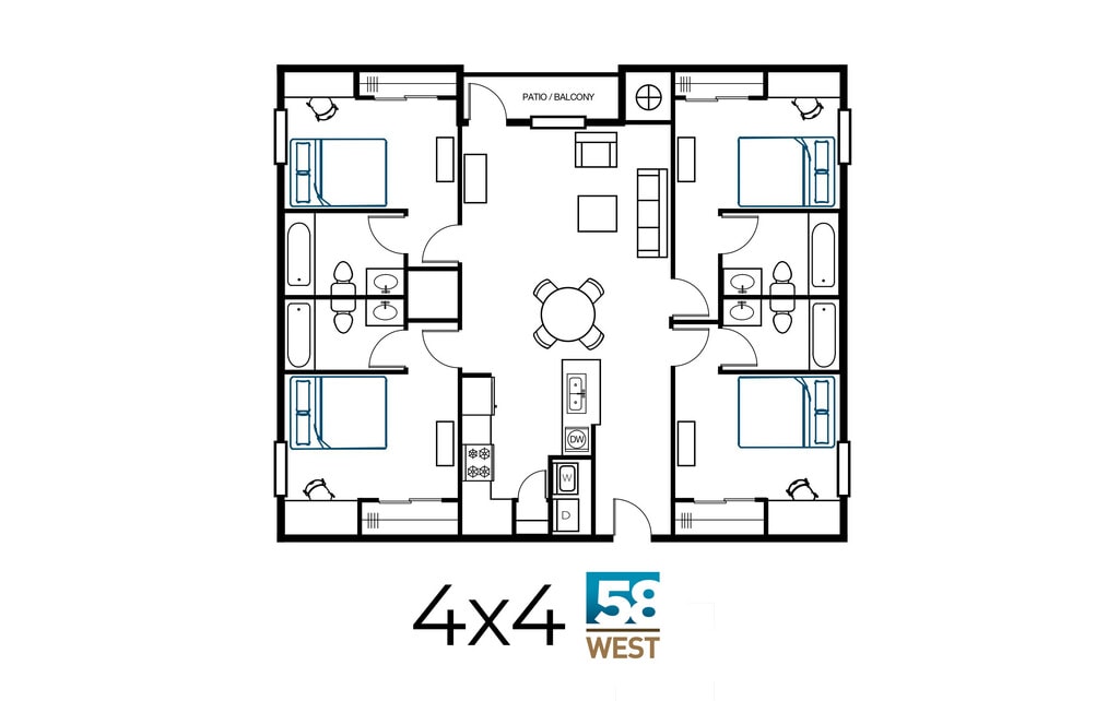 58 West – Luxury Student Living ofrece apartamentos de Estudio a 4 Dormitorios desde $654 con 400–1,220 pies cuadrados. Aquí está el precio actual y la disponibilidad: