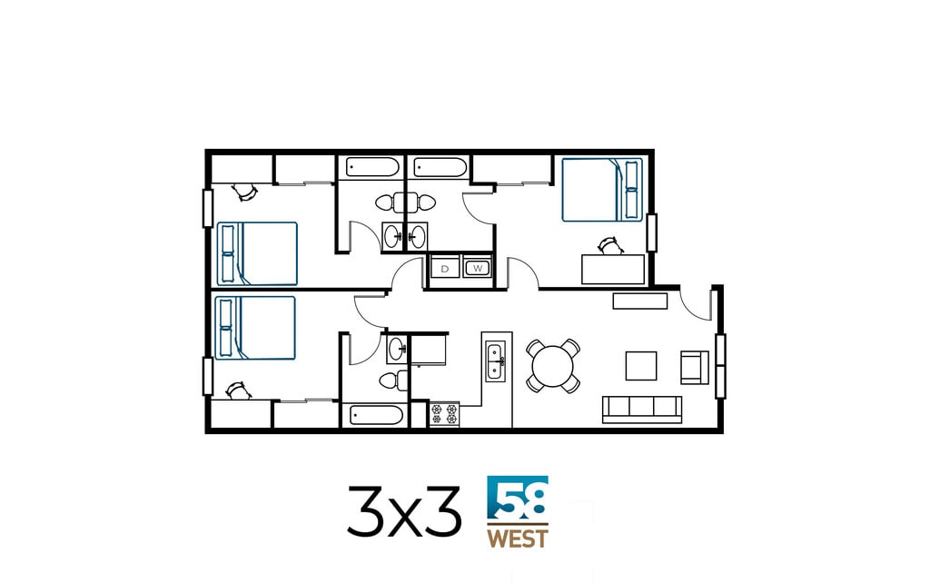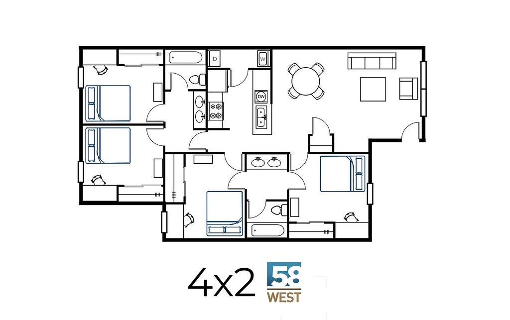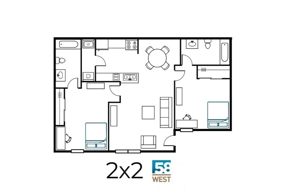 58 West es un complejo de apartamentos de servicio completo diseñado en torno a los estudiantes de la Western Michigan University, en un lugar conveniente a pocos minutos del campus en Kalamazoo. Disfruta de amplios apartamentos en un entorno que ofrece un estilo de vida completo, incluido un gimnasio, cancha de básquetbol de interior, piscina y bañera de hidromasaje, cancha de vóleibol, eventos sociales estudiantiles y servicio de autobús directo a WMU.