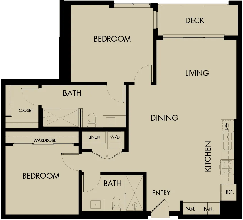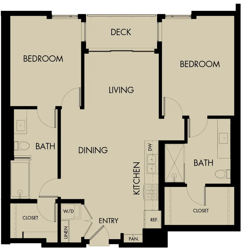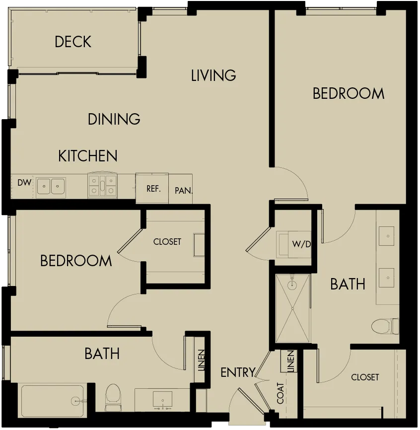 Modelo de apartamento: A04Desde $3,1201 Dormitorio, 1 Baño, 743 sq ftDisponible AhoraLos planos son representaciones artísticas. Todas las dimensiones son aproximadas. El producto y las especificaciones reales pueden variar en tamaño o detalle. No todas las características están disponibles en cada vivienda en alquiler. Por favor, consulta con un representante para obtener más detalles.
