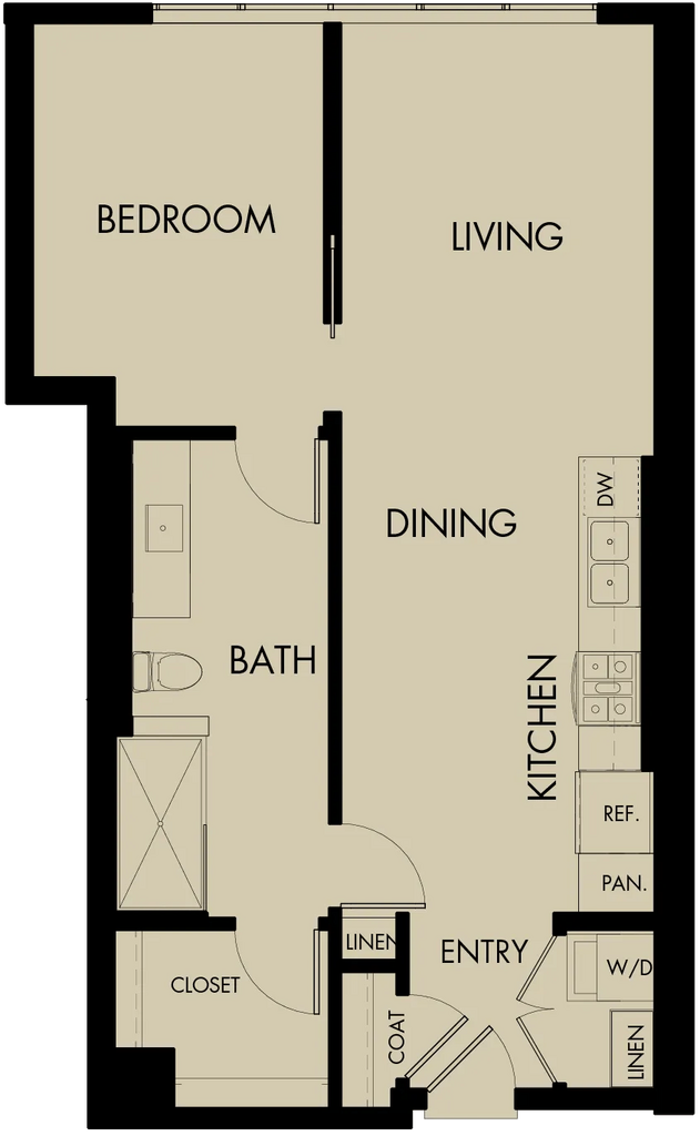 Modelo de apartamento: A01$3,0951 Dormitorio, 1 Baño, 657 sq ftDisponible AhoraLos planos son representaciones artísticas. Todas las dimensiones son aproximadas. El producto y las especificaciones reales pueden variar en tamaño o detalle. No todas las características están disponibles en cada vivienda en alquiler. Por favor, consulta con un representante para obtener más detalles.