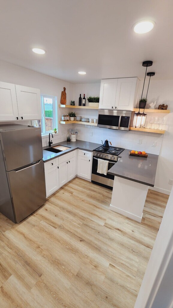 Beautiful and spacious 1 bed, 1 bath home COMPLETELY REMODELED inside. ADU is attached to main house. Recently renovated floors, paint, furniture, appliances, including IN UNIT Washer & Dryer. Every little detail has been remodeled. Nicely Fenced and paved front yard. Includes Refrigerator, Oven/Range. Washer/Dryer. Tenant pays all utilities. 5903 1/2 Glenfinnan Ave., Azusa, CA 91702. Shown by appointment. Do not disturb occupants. text or email. SE HABLA ESPAÑOL.