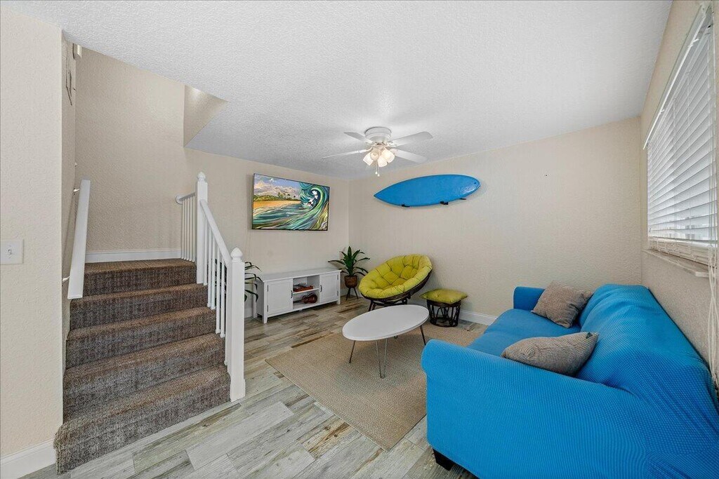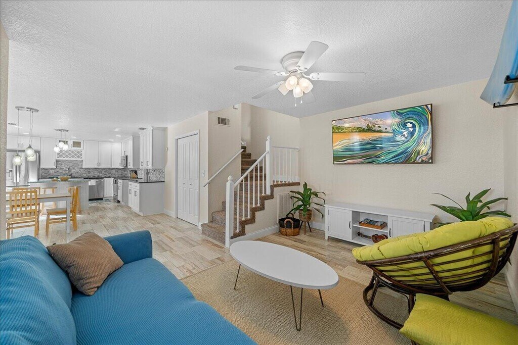 Welcome to your coastal retreat in Satellite Beach! This beautifully renovated townhome offers the perfect blend of comfort, privacy, and Florida charm. Enjoy a spacious open layout with modern finishes, freshly updated paint, and plenty of natural light throughout. The backyard oasis features lush turf, raised planters perfect for a garden, a covered patio area, and a custom outdoor entertainment setup with TV mount and grill space — ideal for relaxing or hosting friends. Downstairs features a spacious living room, a convenient half bath, and a dedicated laundry area that makes daily living effortless. Upstairs offers two full bathrooms and bright bedrooms with ample closet space. The home also includes a private garage, new A/C, and a fully fenced yard for added peace of mind. Located just minutes from the beach, local dining, and A-rated schools, this move-in-ready home brings together convenience and coastal living at its best. Don’t miss this rare find — schedule a showing today!