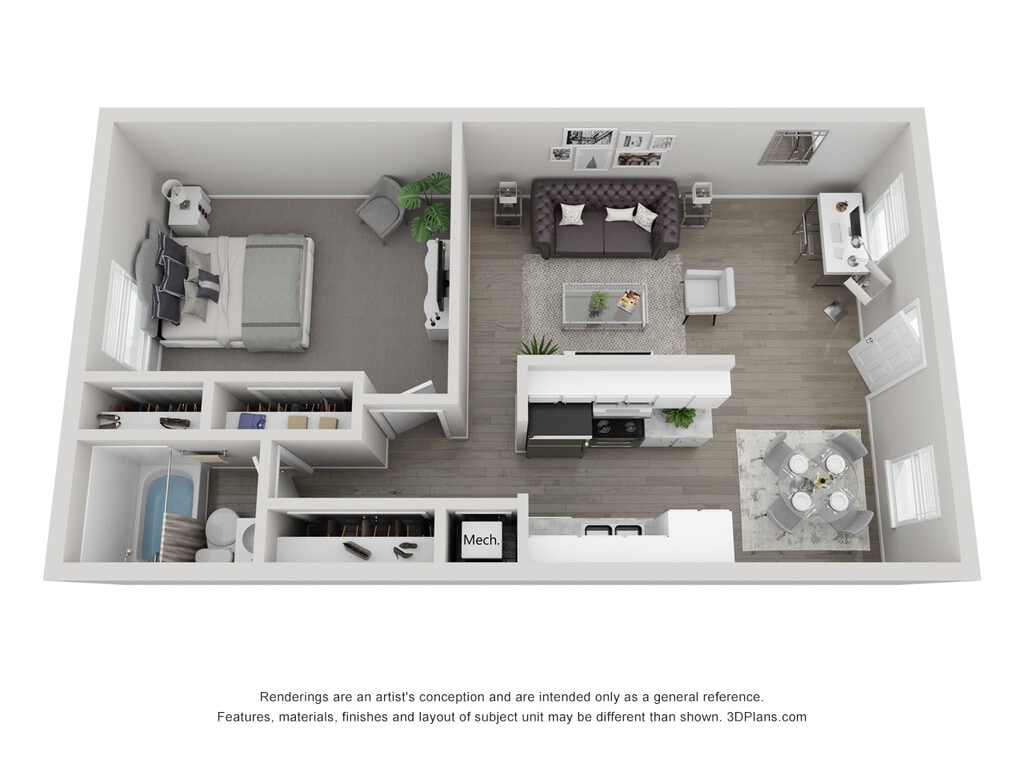 Modelo de apartamento: 1 x 1 Standard - Call For Availability$1,1001 Dormitorio, 1 Baño, 689 sq ftDisponible Ahora![]()