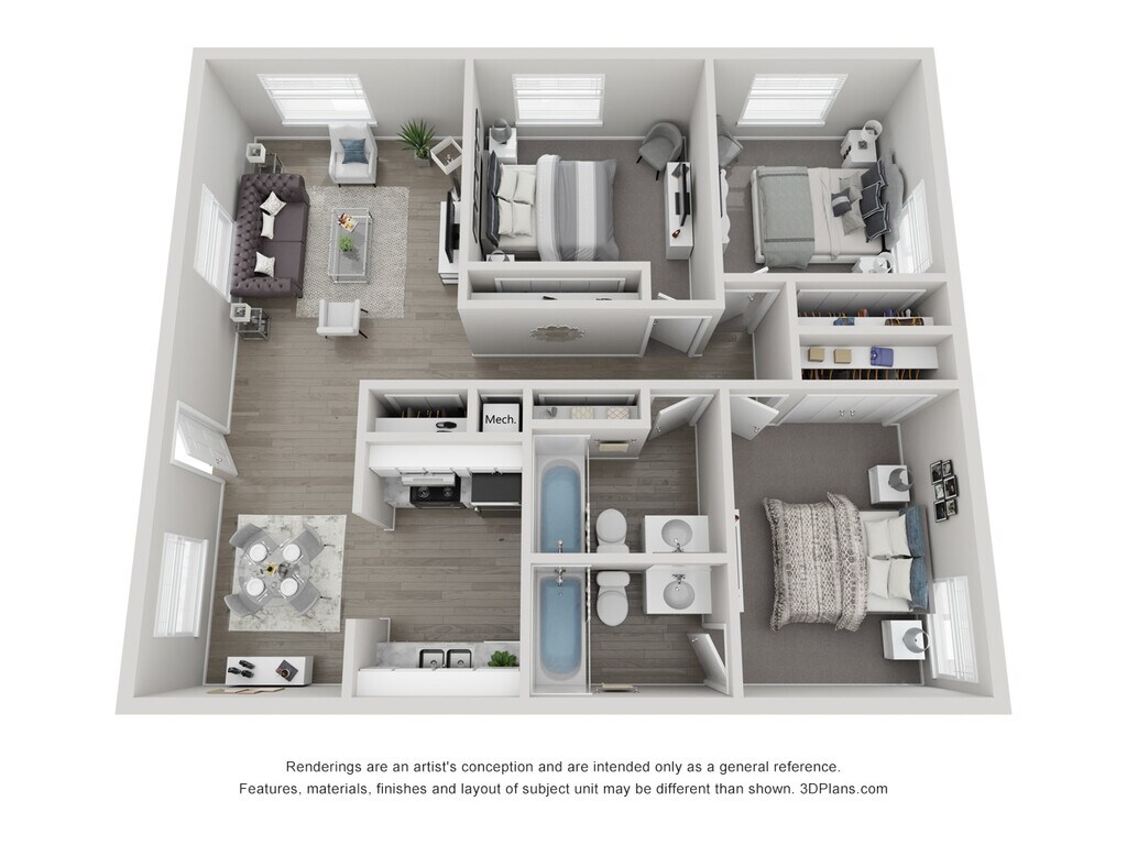 Modelo de apartamento: 3 x 2 Upgrade - Call For Availability$1,8003 Dormitorios, 2 Baños, 1095 sq ftDisponible Ahora![]()