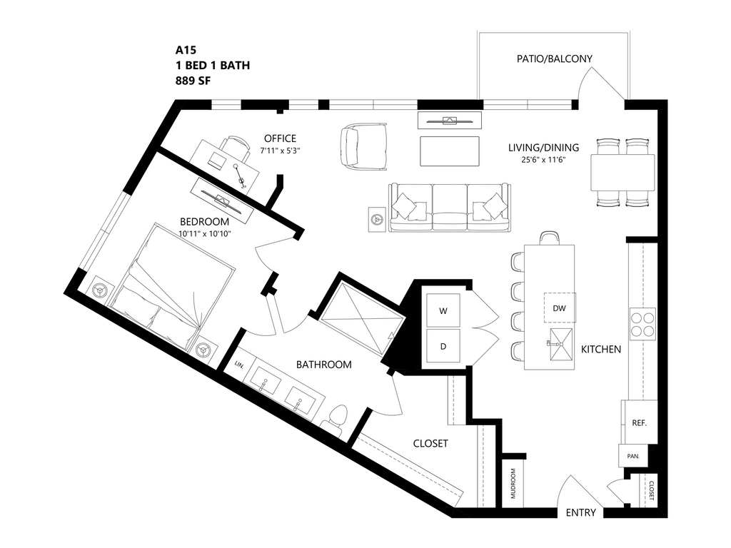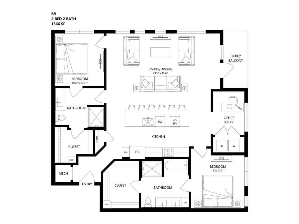 Modelo de apartamento: A9$1,6891 Dormitorio, 1 Baño, 795 sq ftDisponible November 24, 2025![]()