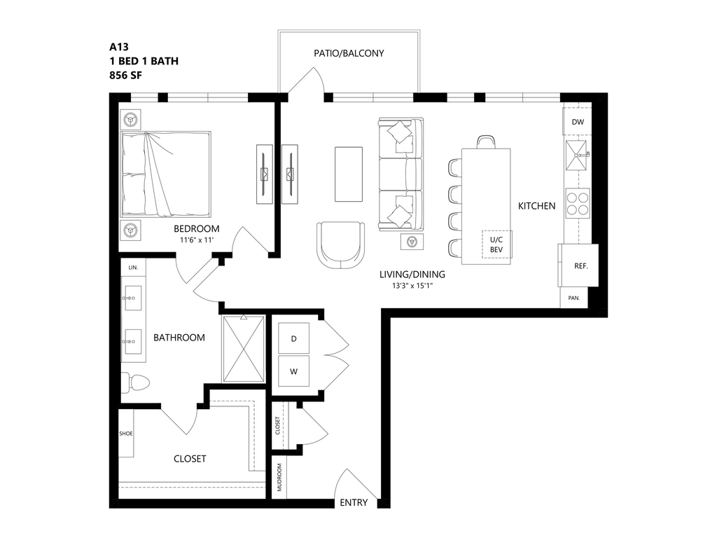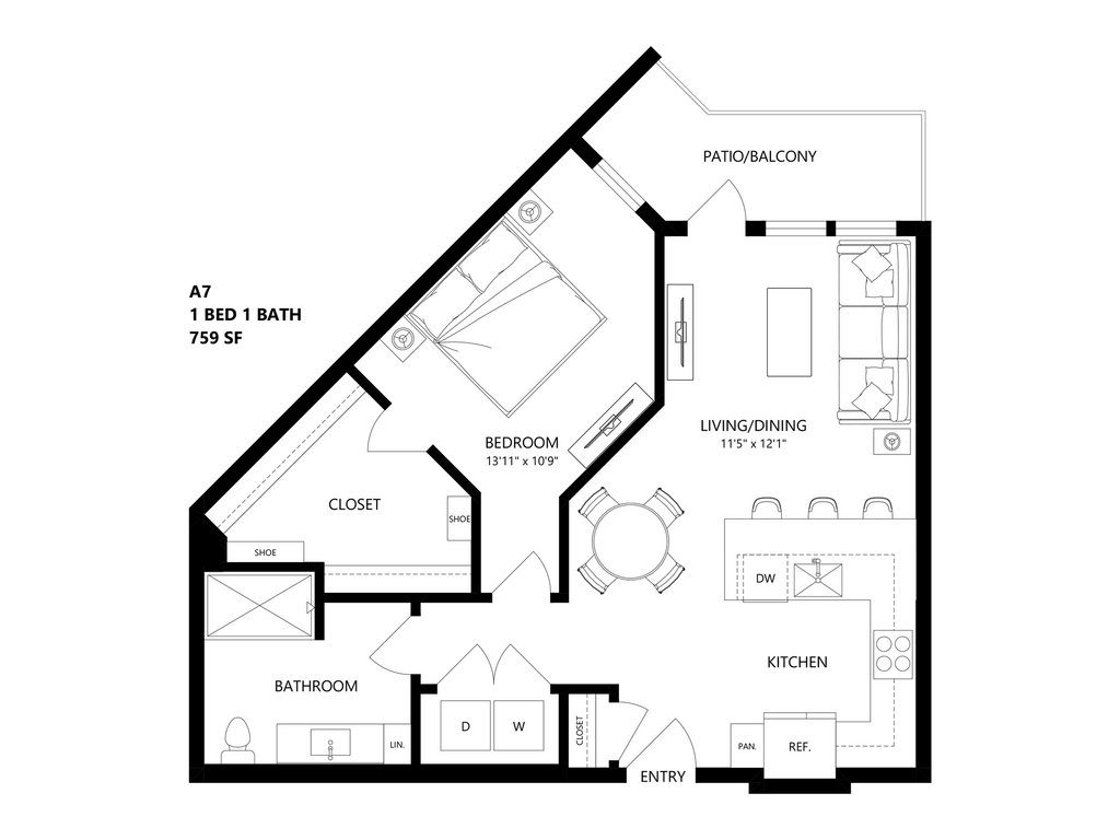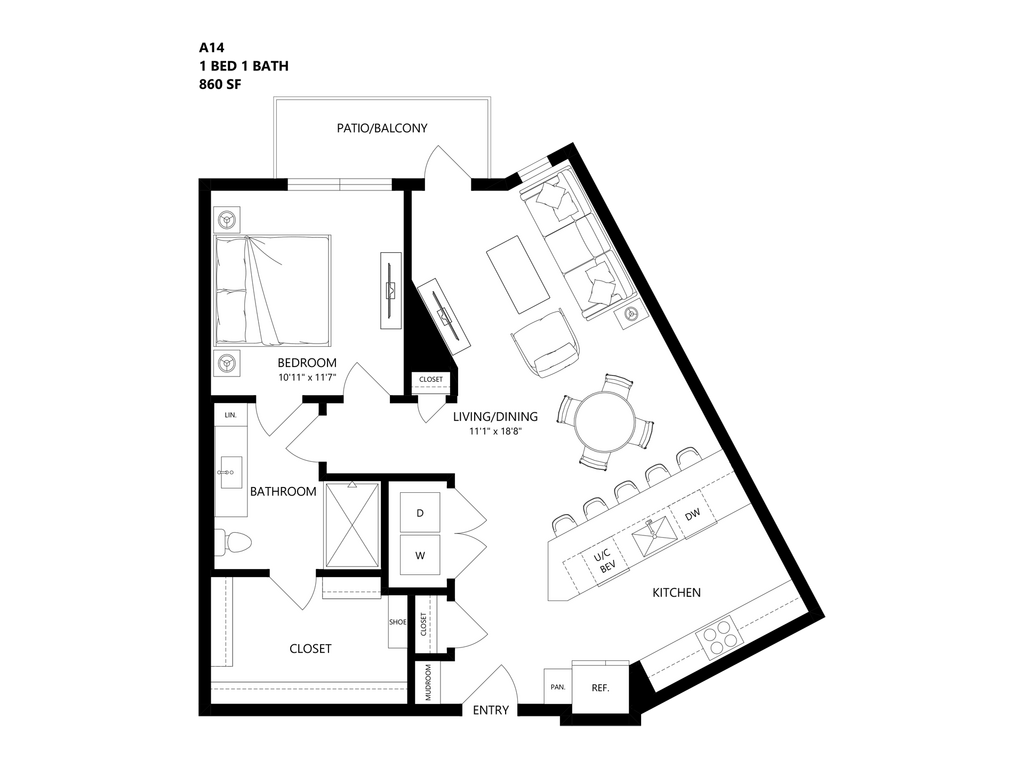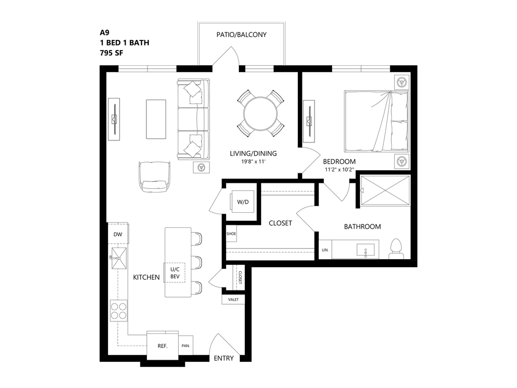 A9 - Plano 1 Unidad de apartamento: 205Modelo de apartamento: A9$1,6891 Dormitorio, 1 Baño, 795 sq ftDisponible November 24, 2025A1.1