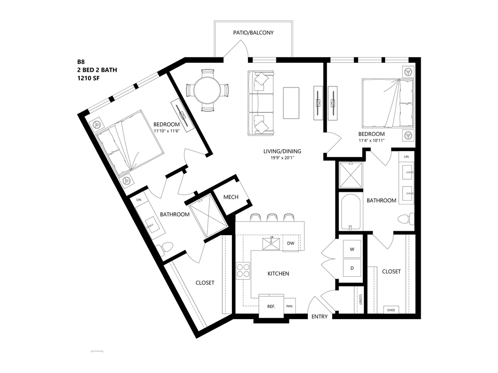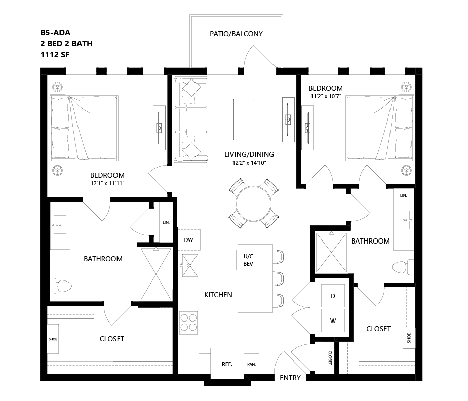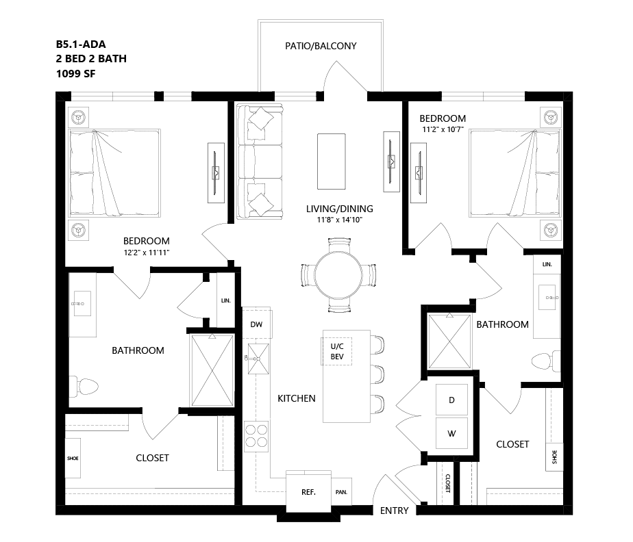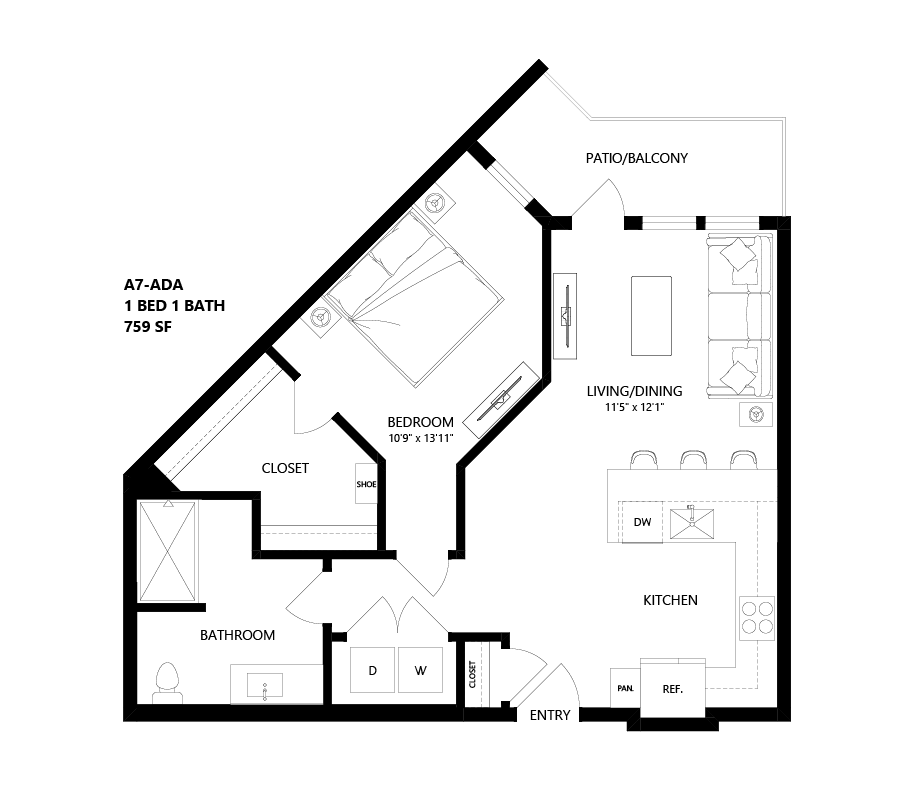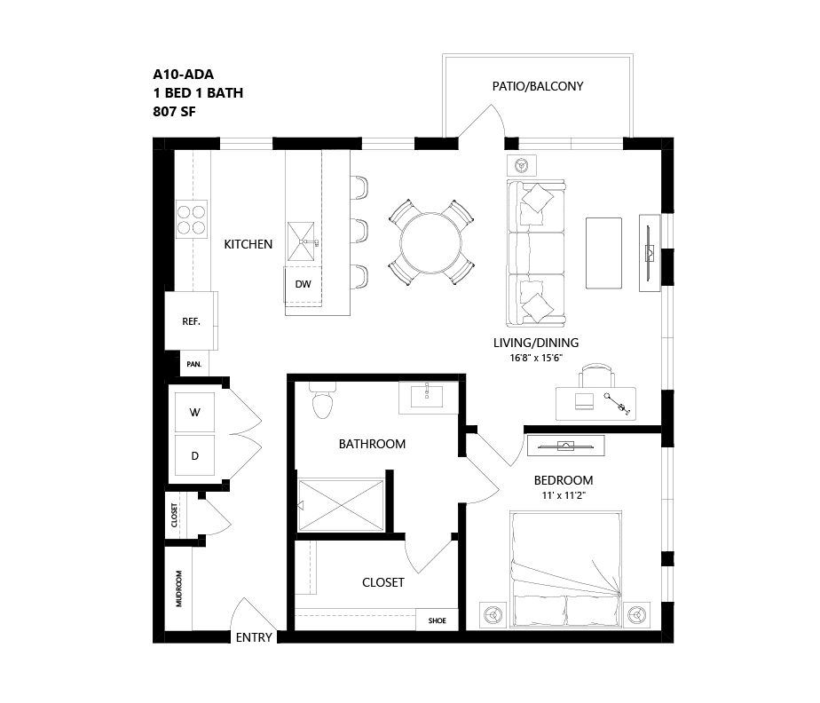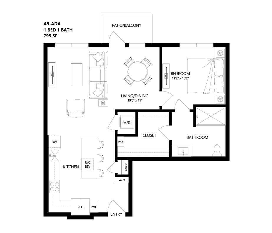 A9-ADA - Plano 1 Unidad de apartamento: 105Modelo de apartamento: A9-ADA$1,5941 Dormitorio, 1 Baño, 795 sq ftDisponible AhoraPlano: A8
