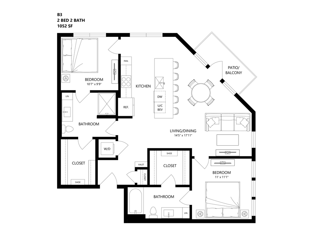 Modelo de apartamento: A1.1Desde $1,6771 Dormitorio, 1 Baño, 662 sq ftDisponible December 1, 2025![]()