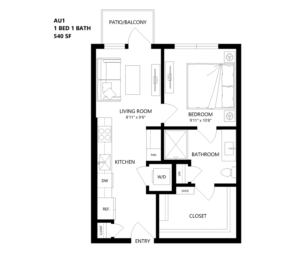 Modelo de apartamento: AU1Desde $1,413Estudio, 1 Baño, 540 sq ftDisponible December 1, 2025![]()
