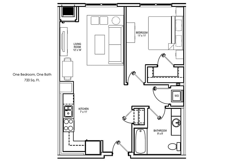 1 Dormitorio, 1 Baño, 720 pies²Disponible Dec 5Galería del Modelo