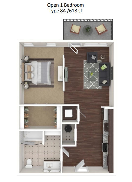 Modelo de apartamento: Open 1 Bedroom - 8A$1,995Estudio, 1 Baño, from 618 sq ftDisponible AhoraOpen 1 Bedroom - 8A - Plano 1 Open 1 Bedroom - 10