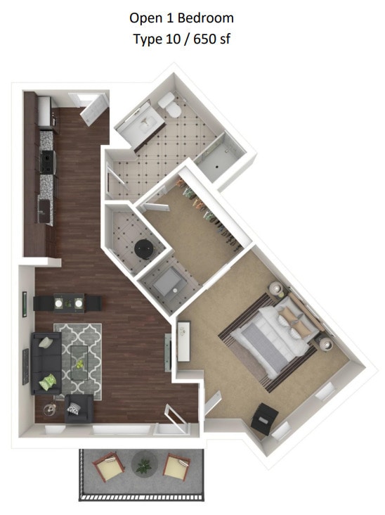 Modelo de apartamento: Open 1 Bedroom - 10$2,000Estudio, 1 Baño, from 650 sq ftDisponible AhoraOpen 1 Bedroom - 10 - Plano 1 1 Dormitorio