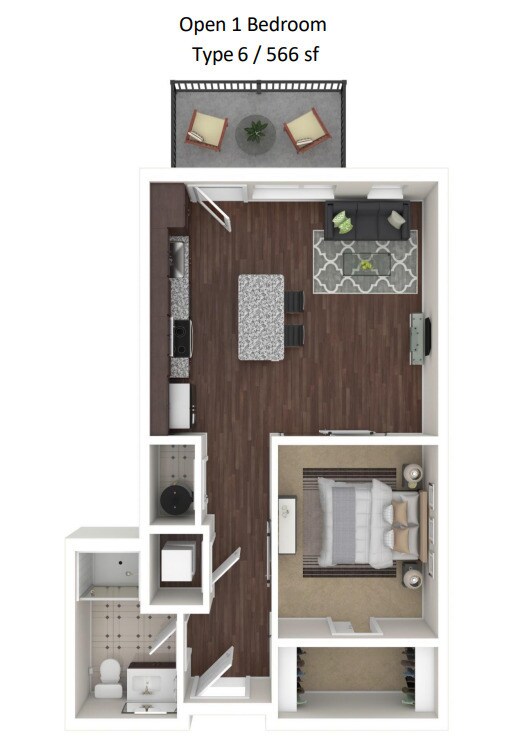 Modelo de apartamento: Open 1 Bedroom - 6$1,810Estudio, 1 Baño, from 566 sq ftDisponible AhoraOpen 1 Bedroom - 6 - Plano 1 Open 1 Bedroom - 7