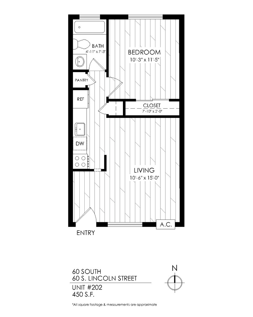 2 Bedrooms, 1 Bath - Plano 3 Unidad de apartamento: 107Modelo de apartamento: 2 Bedrooms, 1 Bath2 Dormitorios, 1 Baño, 610 sq ftDisponible Ahora![]()