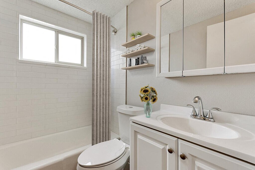 2 Bedrooms, 1 Bath - Plano 1 Los planos son representaciones artísticas. Todas las dimensiones son aproximadas. El producto y las especificaciones reales pueden variar en tamaño o detalle. No todas las características están disponibles en cada vivienda en alquiler. Por favor, consulta con un representante para obtener más detalles.
