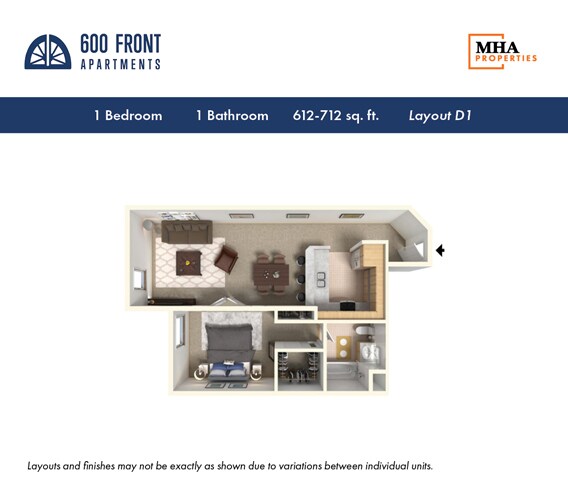 1 Dormitorio, 1 Baño, 620-786 pies²Disponible AhoraGalería del Modelo