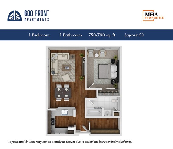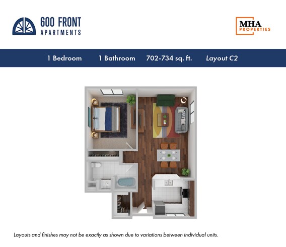 600 Front Apartments ofrece apartamentos de Estudio a 2 Dormitorios desde $2,505 con 465–890 pies cuadrados. Aquí está el precio actual y la disponibilidad: