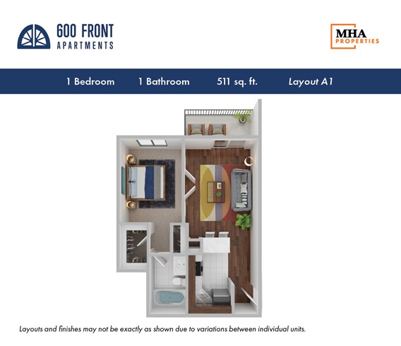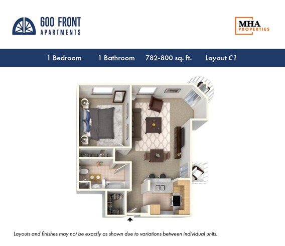 1 Bedroom, 1 Bath - Plano 7 ![]()