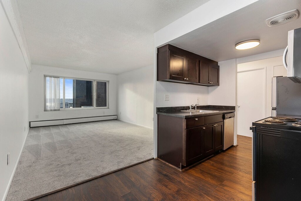 600 Ninth es un pequeño edificio de 7 pisos de mediados de siglo de 51 apartamentos. Elegantes apartamentos de 1 habitación/1 baño disponibles. La mayoría de los apartamentos renovado con una nueva cocina y accesorios de baño. Video: https://youtu.be/tT060vRoiI0 Además cuenta con refrigerador y estufa, la mayoría de las cocinas también tienen un lavaplatos, un horno de microondas, campana extractora & triturador de basura. Vestidor es un lugar único en la puerta para almacenaje, y los abrigos. El baño cuenta con un amplio espacio de almacenaje con está construido en ropa blanca/armario de tocador. La sala de estar cuenta con una agradable escritorio empotrado y gabinetes para personas que trabajan en casa, o utilícela como un centro de entretenimiento. El área de comedor puedes adaptarse a una mesa y asientos para 4. El habitación es lo suficientemente grande como para una cama tamaño king, mesas de noche y una cómoda.