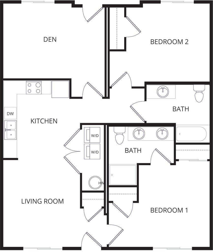 Modelo de apartamento: Summit 2x1.52 Dormitorios, 1.5 Baños, 1161 sq ftDisponible Ahora![]()