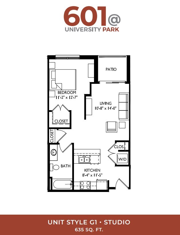 Estudio, 1 Baño, 635 pies²El más grandeEsta opción tiene las unidades más grandes para este modeloGalería del Modelo