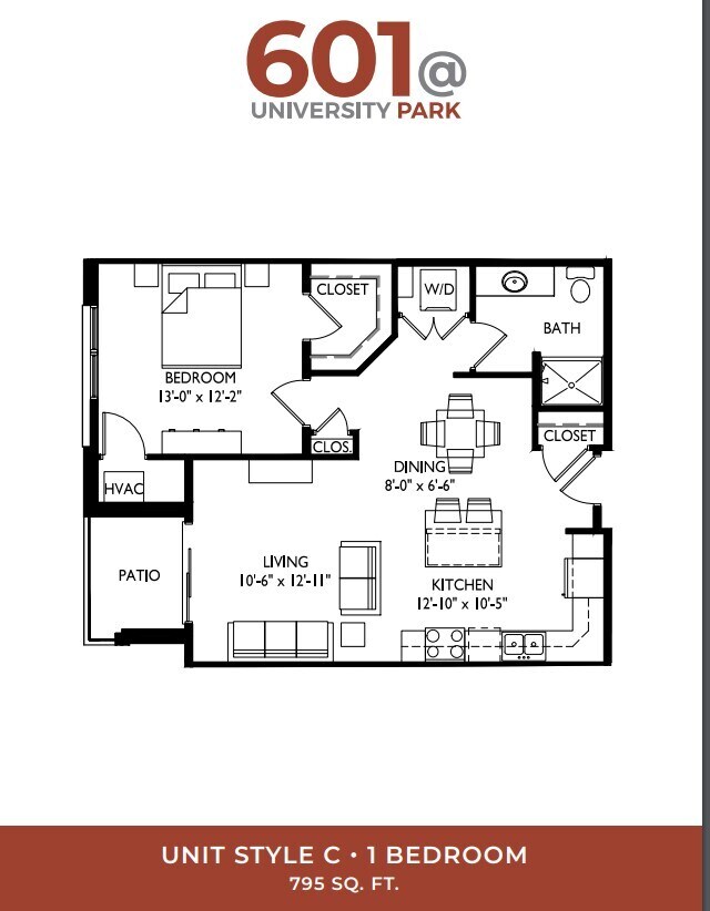 Modelo de apartamento: 1X1 (C)$1,7001 Dormitorio, 1 Baño, 795 sq ftDisponible November 30, 2025![]()