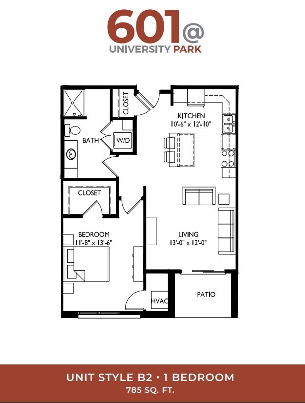 1 Dormitorio, 1 Baño, 785 pies²Disponible AhoraGalería del Modelo