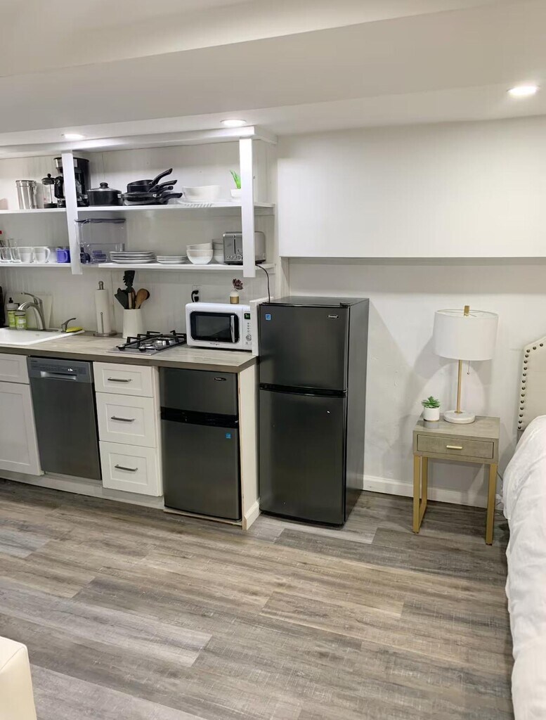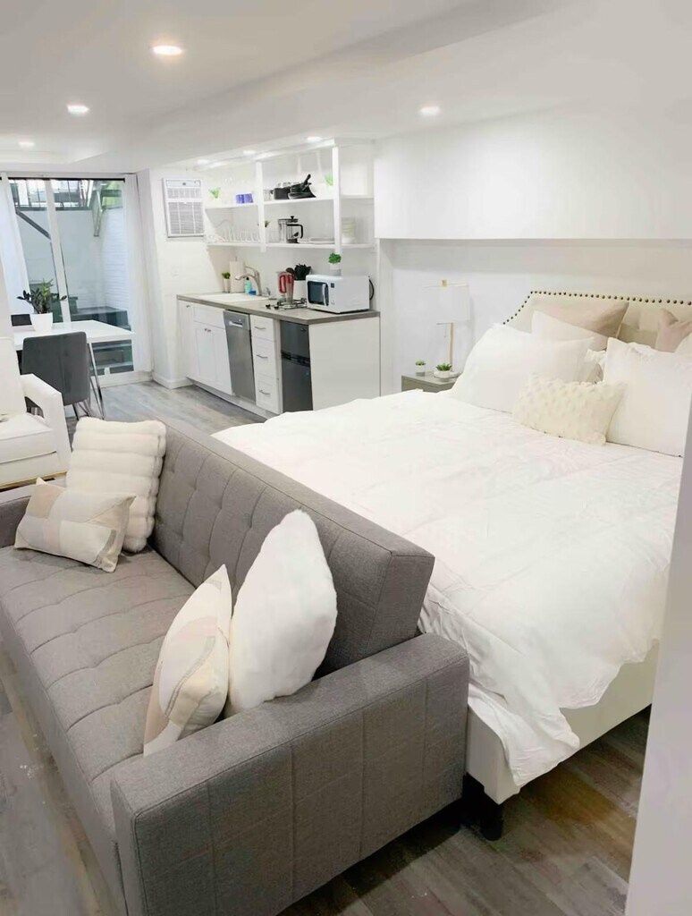 Beautiful, spacious garden-view apartment! It’s a large studio-almost 500 square feet at the lower level of a townhouse with a private garden! It was recently renovated and meticulously decorated for your ultimate comfort. There is a brand new kitchenette (with a stovetop) dishwasher, a bathtub, smart TV, AC, fireplace, a dresser, a full closet, washer & dryer and two refrigerators. Privacy, comfort and modern amenities are all a part of this recently renovated Brooklyn home. This spacious apartment has a lovely garden with private access --a rare find!. The apartment is equipped with a dishwasher, AC and heat, television, and more. It is located in one of the most exciting neighborhoods in Brooklyn - full of restaurants, art, cafes, and nightlife. Location is EVERYTHING and a HUGE bonus is that it's only a 3 minute walk to the subway where there are two central train stops-the L & the M, and it's only a 20 minute ride into Manhattan! We put SO much love into this apartment. (Note it is 1/2 a flight of stairs down). **Security deposit: 1 month's rent ($2,500)**