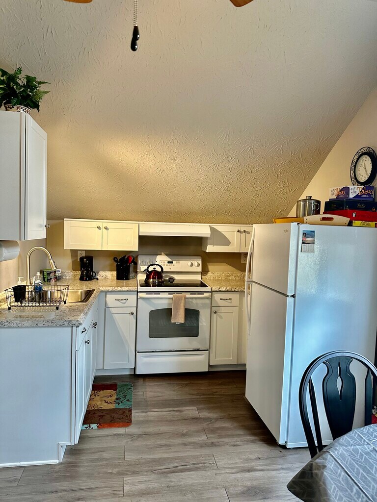 Private, furnished, spacious 1 bedroom apartment: queen size bed w/ two big closets. Large Kitchen and living room combo has picture window looking out to wooded area & sunset views. All the amenities you need: coffee maker, full size stove, Full fridge w/ice maker. Microwave, toaster, lots of cooking utensils, equipment and appliances. Smart TV w/ WiFi & Roku, full bath w/shower & separate jacuzzi tub, private parking, private entrance, stairwell and apartment. No shared spaces. Short drive to the beach. NO Laundry facilities. Cable, internet and utilities included in rent.