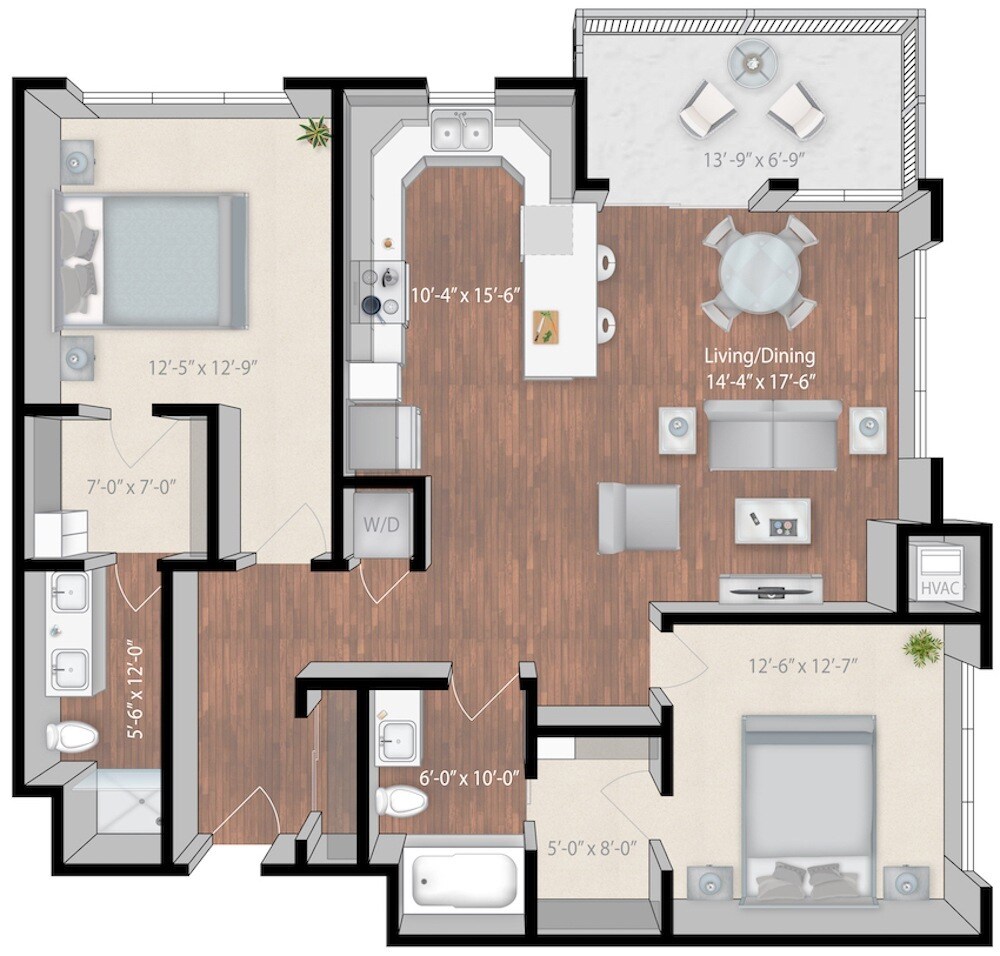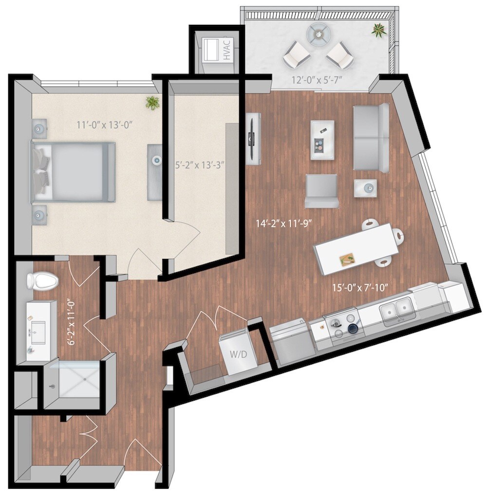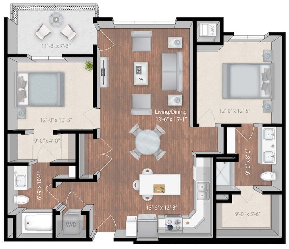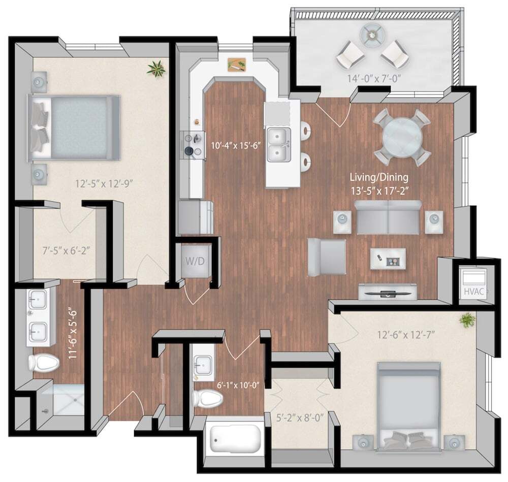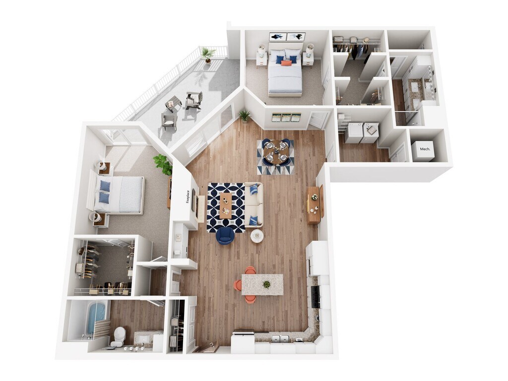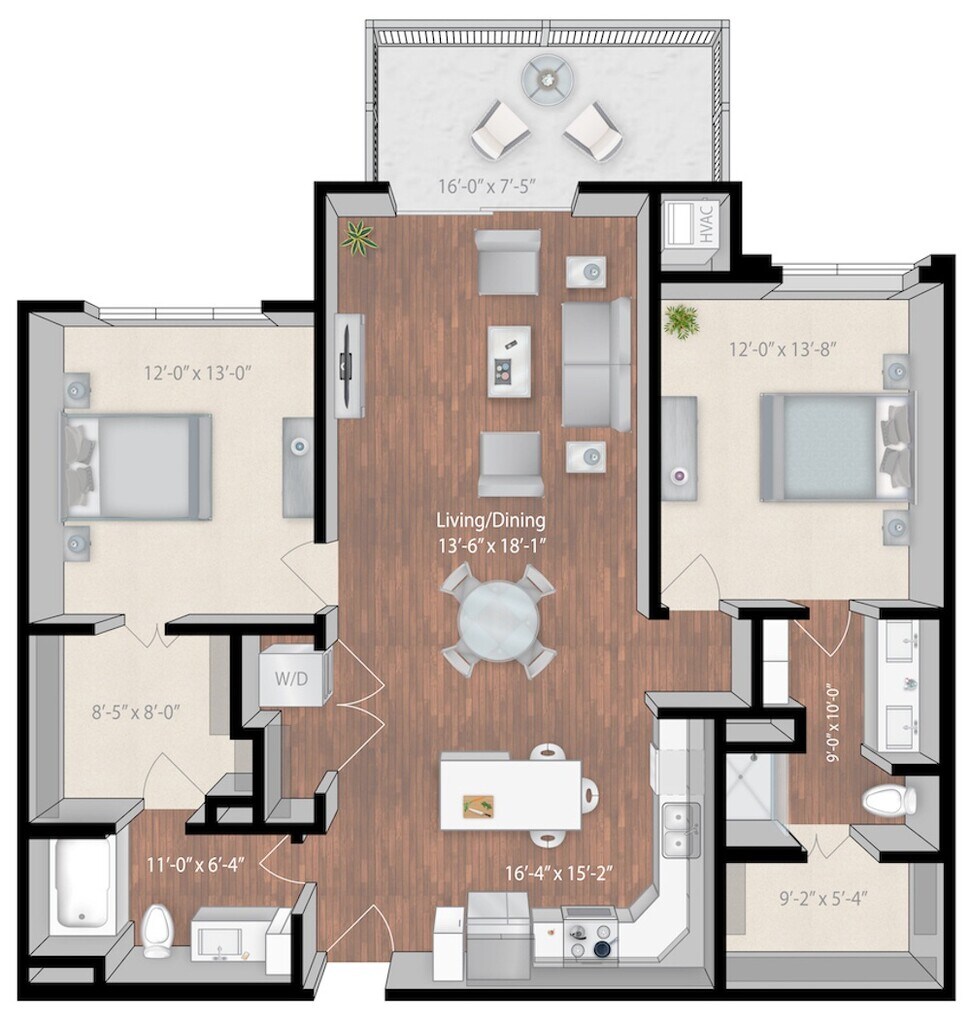 Florida - Plano 2 Unidad de apartamento: 1231Modelo de apartamento: Florida$1,5911 Dormitorio, 1 Baño, 845 sq ftDisponible AhoraValley