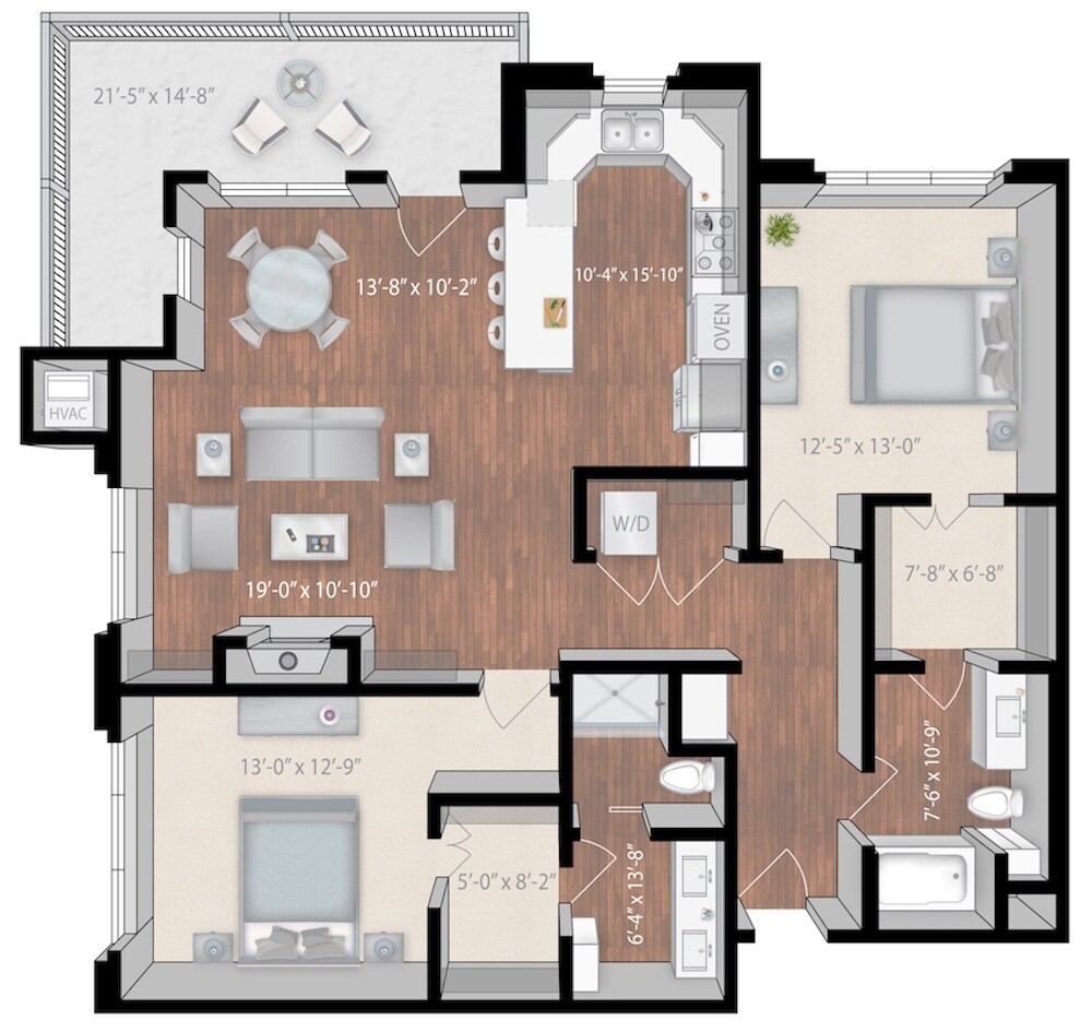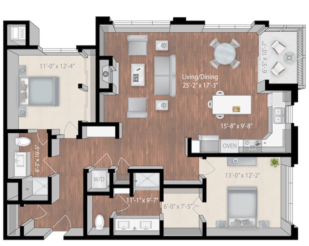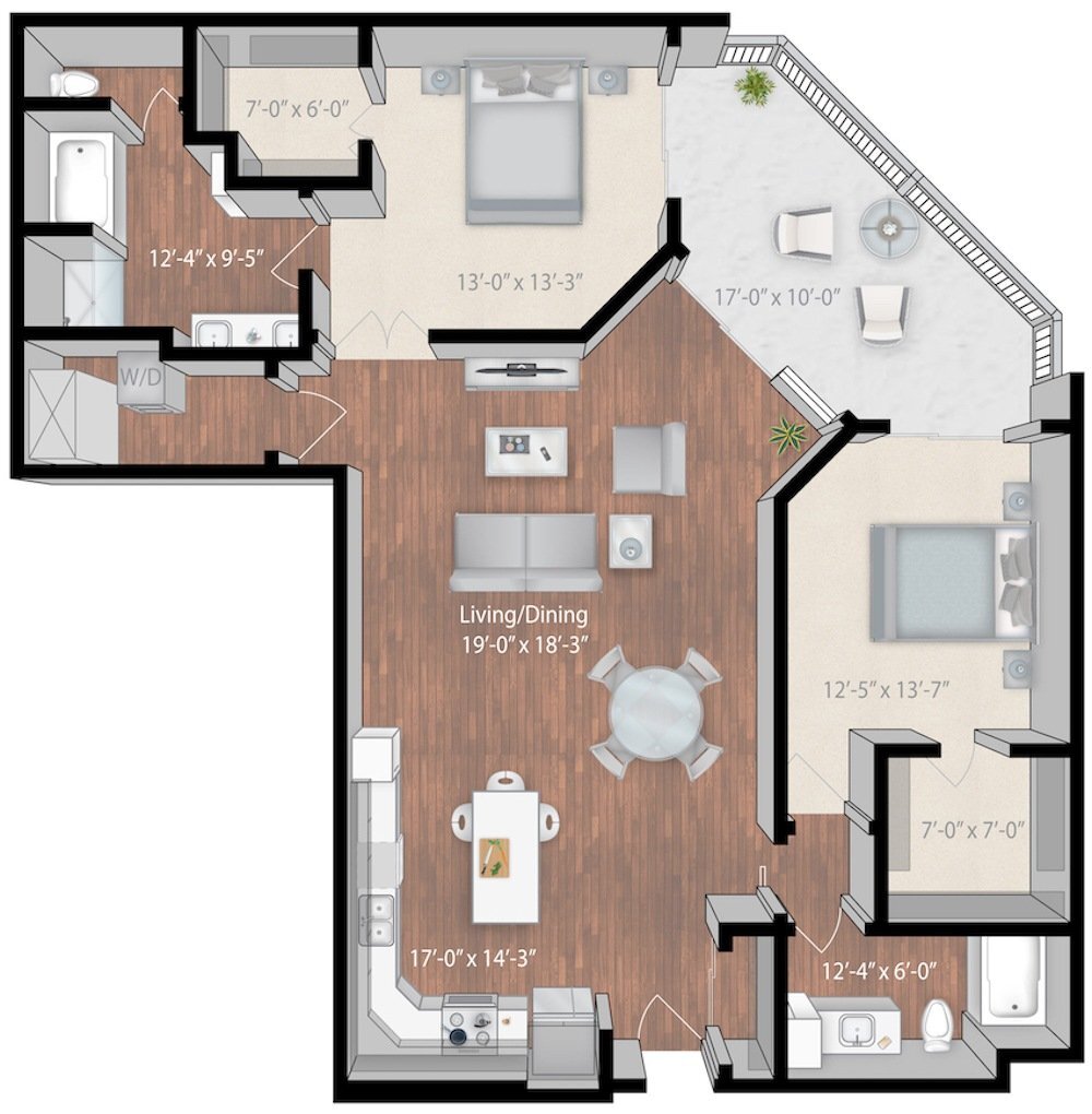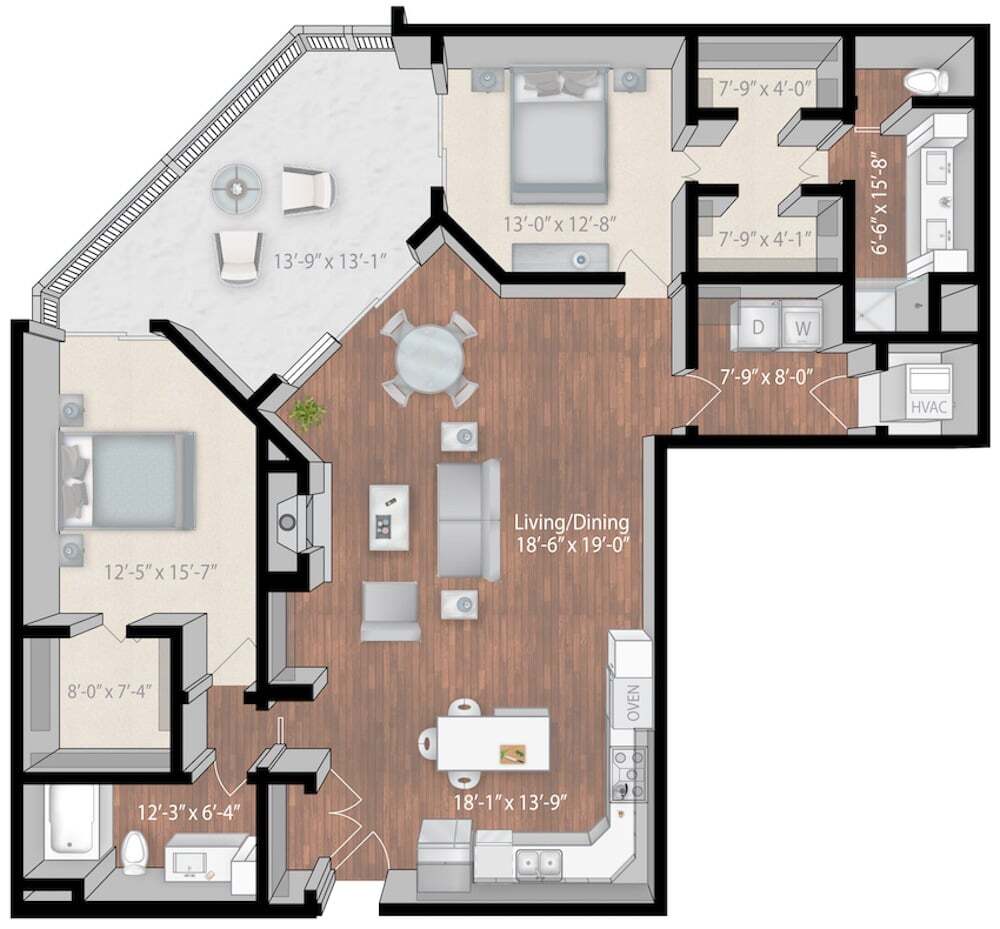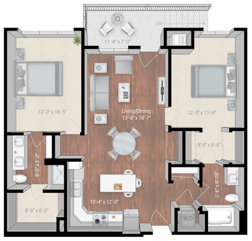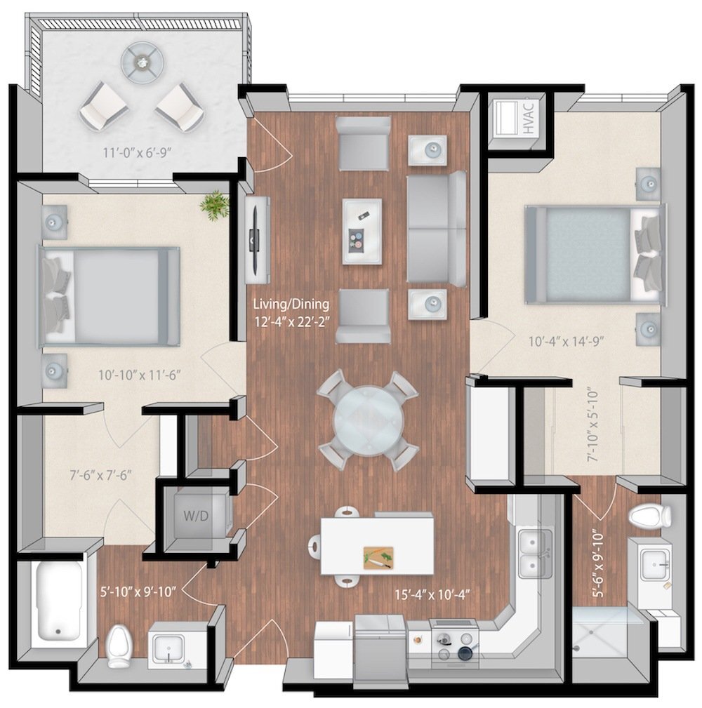 Florida - Plano 2 Unidad de apartamento: 1231Modelo de apartamento: Florida$1,5911 Dormitorio, 1 Baño, 845 sq ftDisponible AhoraValley