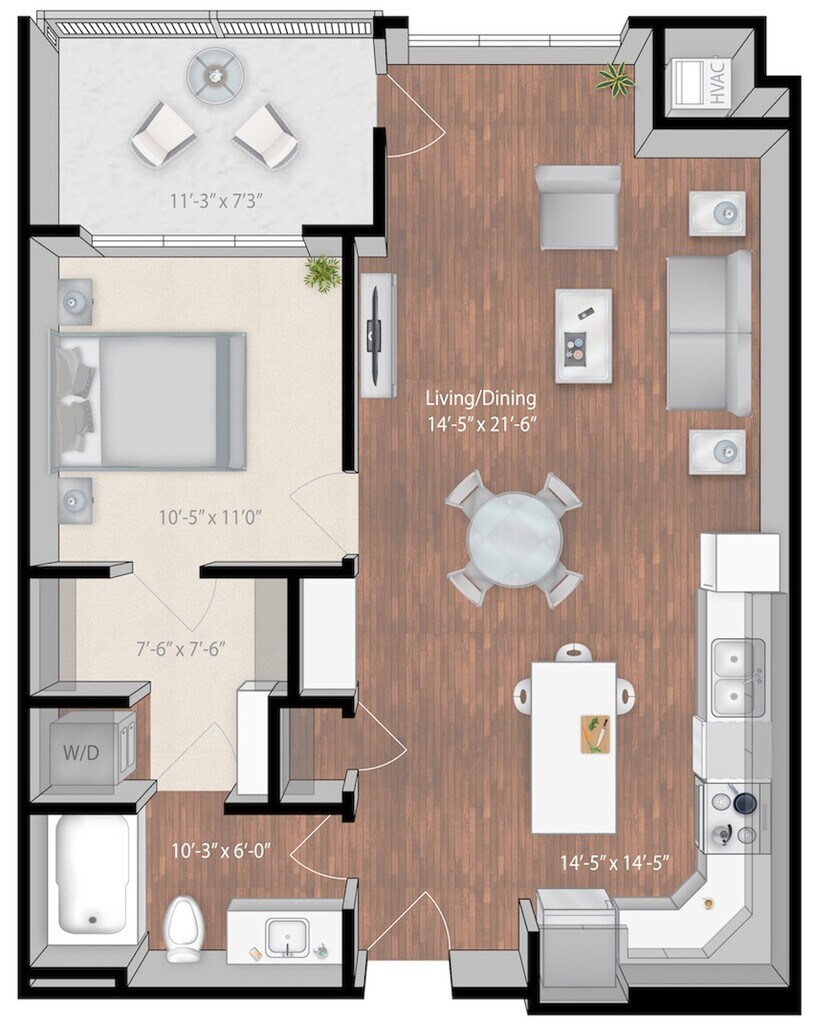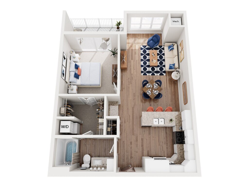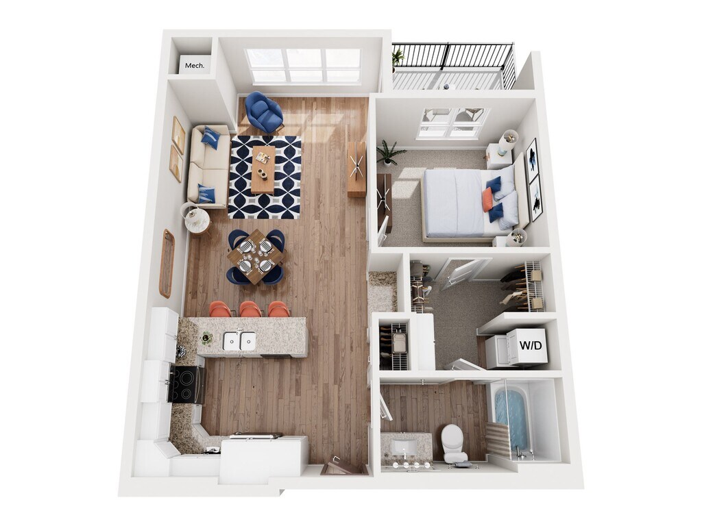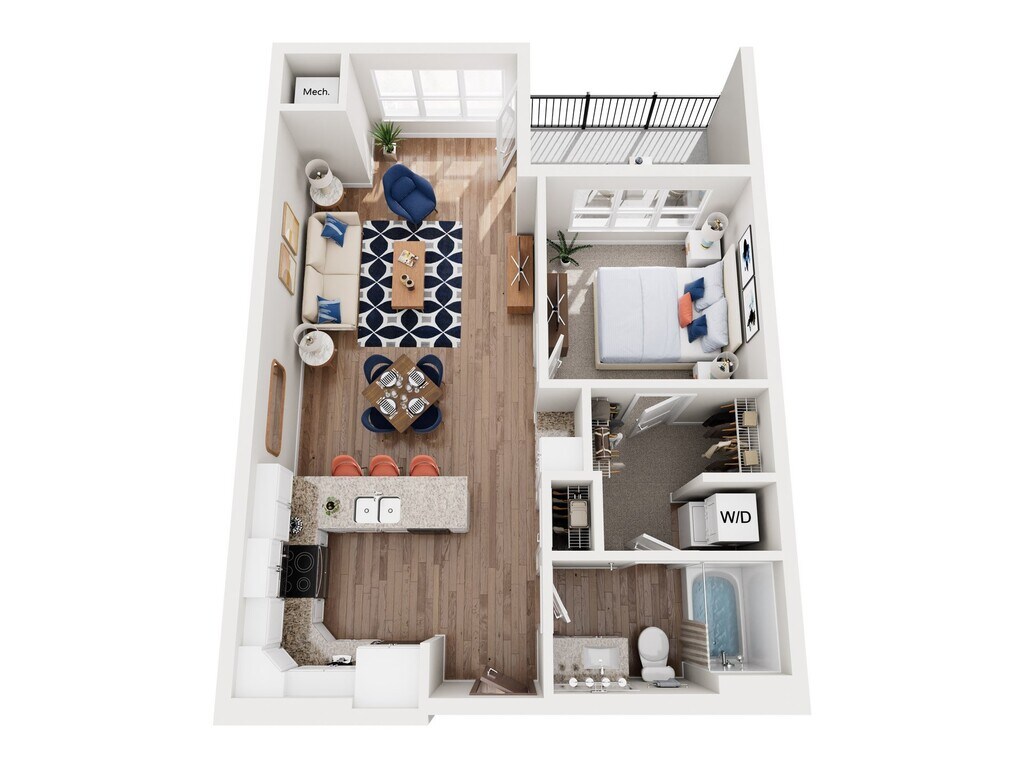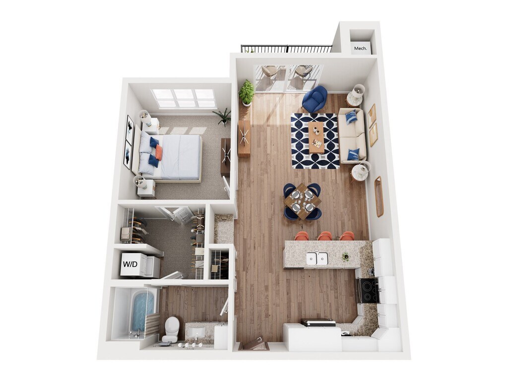 1 Dormitorio, 1 Baño, 690 pies²Precio Mensual TotalDisponible AhoraGalería del Modelo