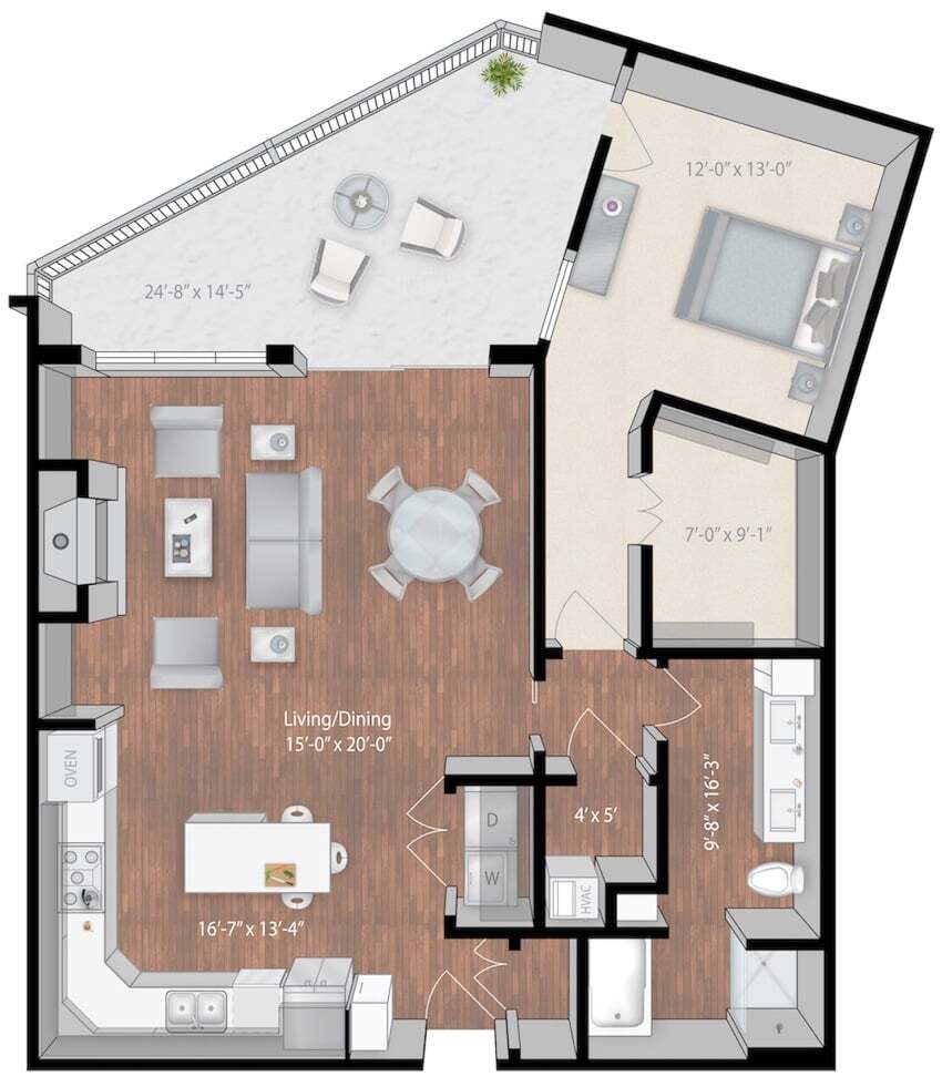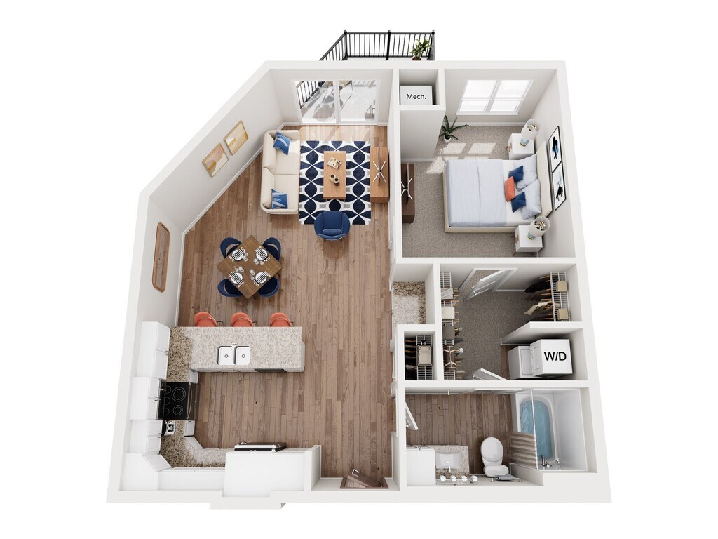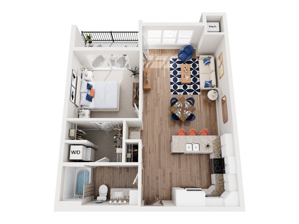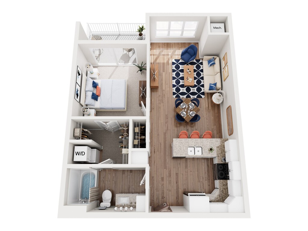 1 Dormitorio, 1 Baño, 690 pies²Precio Mensual TotalDisponible AhoraGalería del Modelo