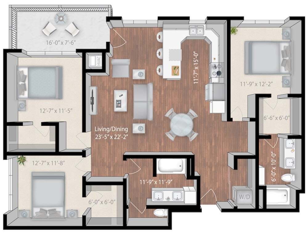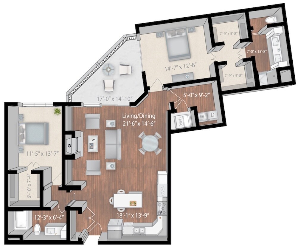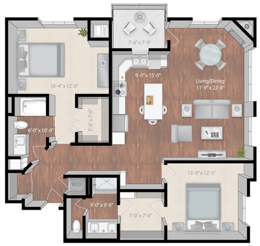 Modelo de apartamento: ValleyDesde $1,5991 Dormitorio, 1 Baño, 690 sq ftDisponible AhoraLos planos de la planta son una interpretación artística. Todas las dimensiones son aproximadas. Los tamaños o el detalle del producto real y sus especificaciones pueden variar. No todas las características están disponibles en todos los hogares para rentar. Los precios y la disponibilidad están sujetos a cambios. El alquiler que se muestra es mensual. Se pueden aplicar ciertos cargos, por ejemplo, entrega de paquetes, recolección de basura, agua, servicios, etc. Depositos varian. Consulta a un representante para conocer detalles.
