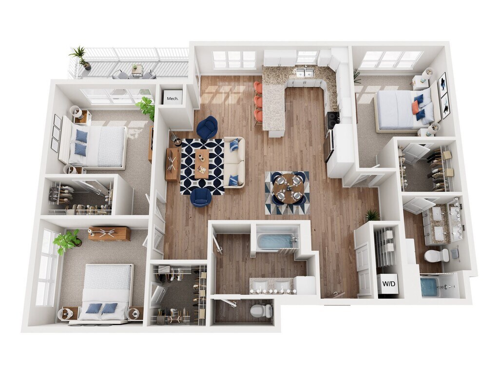 Florida - Plano 1 Los planos de la planta son una interpretación artística. Todas las dimensiones son aproximadas. Los tamaños o el detalle del producto real y sus especificaciones pueden variar. No todas las características están disponibles en todos los hogares para rentar. Los precios y la disponibilidad están sujetos a cambios. El alquiler que se muestra es mensual. Se pueden aplicar ciertos cargos, por ejemplo, entrega de paquetes, recolección de basura, agua, servicios, etc. Depositos varian. Consulta a un representante para conocer detalles.