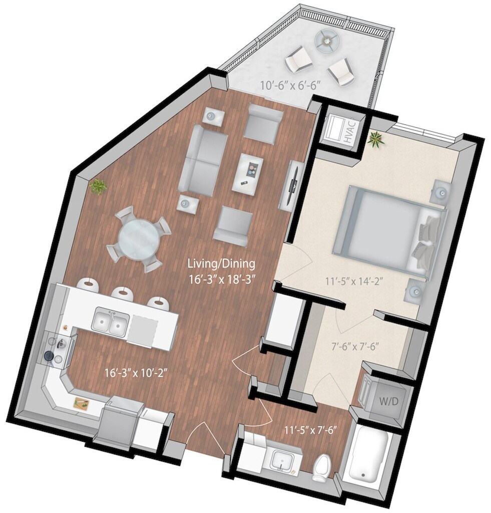 Modelo de apartamento: MarigoldLlame para PreciosEstudio, 1 Baño, 702 sq ftNo DisponibleLos planos de la planta son una interpretación artística. Todas las dimensiones son aproximadas. Los tamaños o el detalle del producto real y sus especificaciones pueden variar. No todas las características están disponibles en todos los hogares para rentar. Los precios y la disponibilidad están sujetos a cambios. El alquiler que se muestra es mensual. Se pueden aplicar ciertos cargos, por ejemplo, entrega de paquetes, recolección de basura, agua, servicios, etc. Depositos varian. Consulta a un representante para conocer detalles.