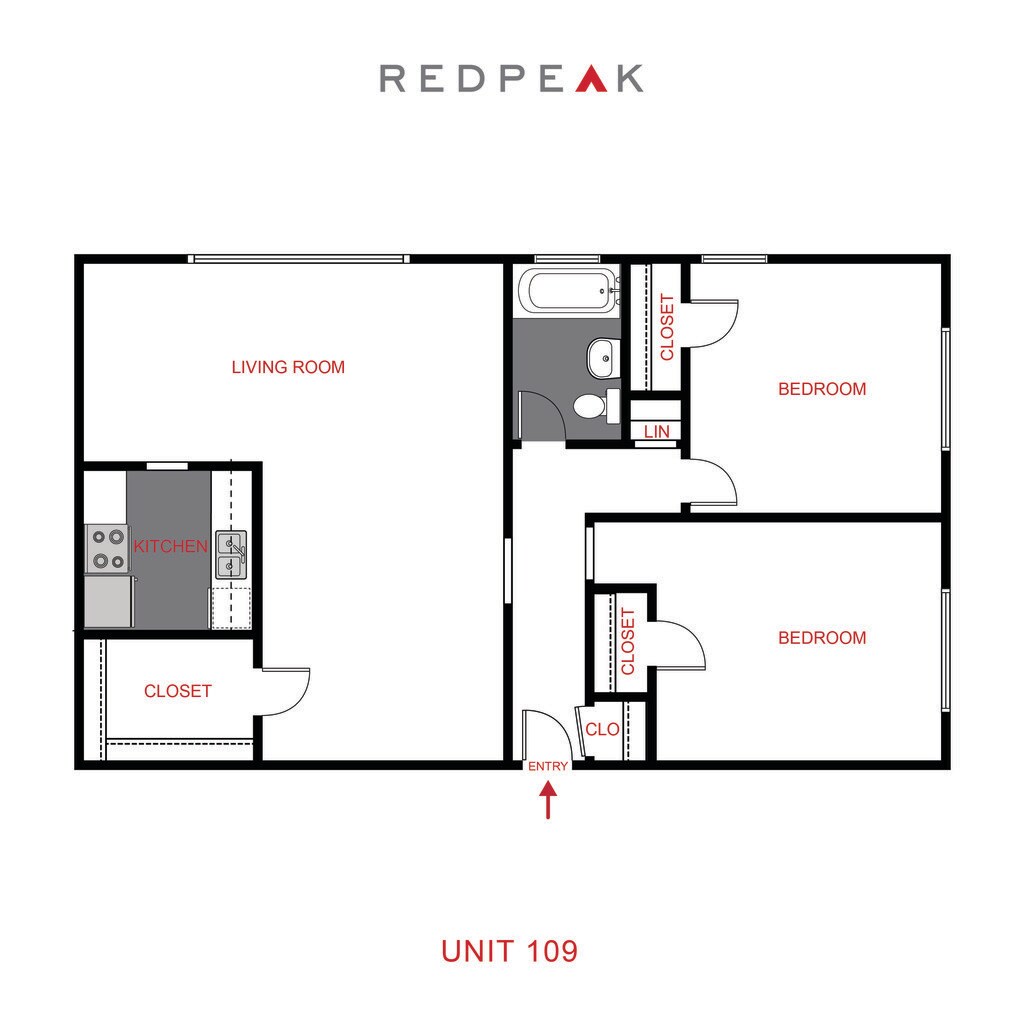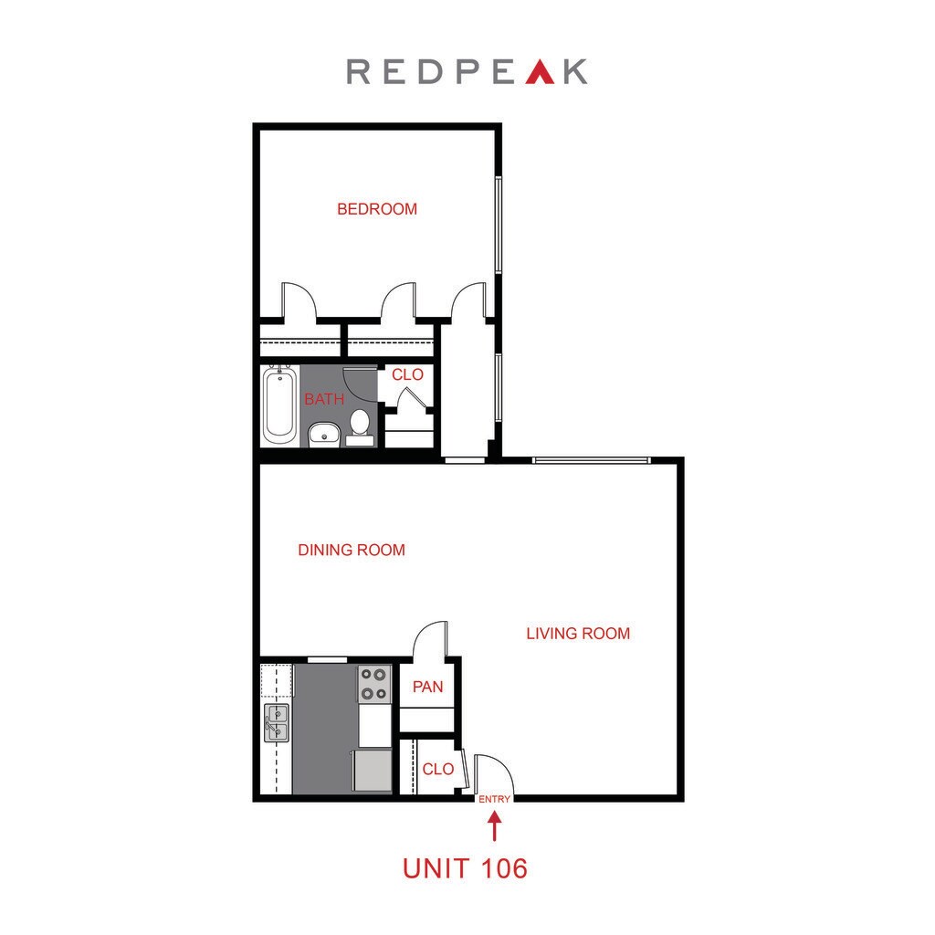 2 Bed 1 Bath - Plano 11 Unidad de apartamento: 203Modelo de apartamento: 2 Bed 1 Bath2 Dormitorios, 1 Baño, 854 sq ftDisponible Ahora