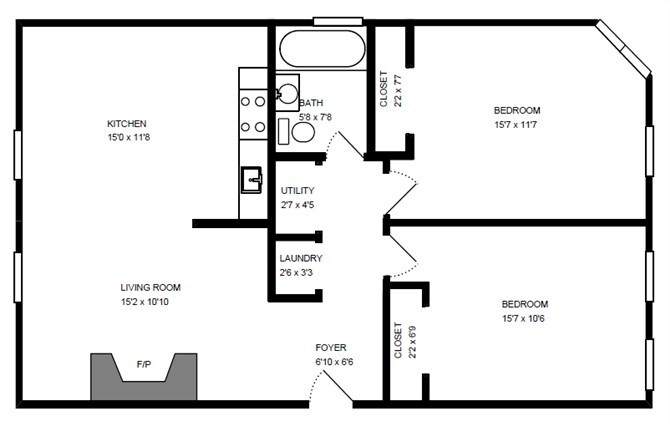 2 Dormitorios, 1 Baño, 819 pies²Galería del Modelo