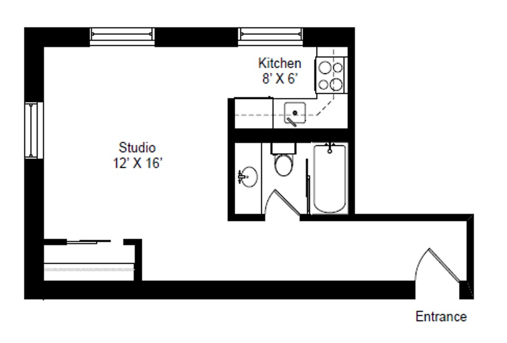 Estudio, 1 Baño, 300-400 pies²Disponible Apr 15Detalles de Diponibilidad