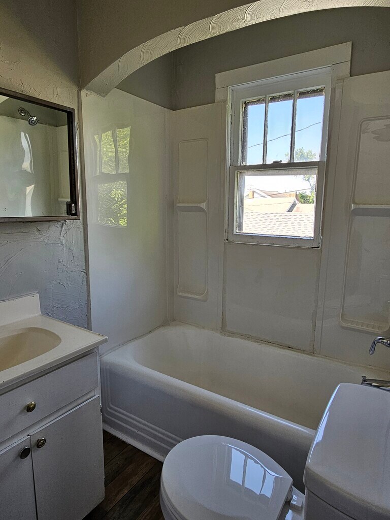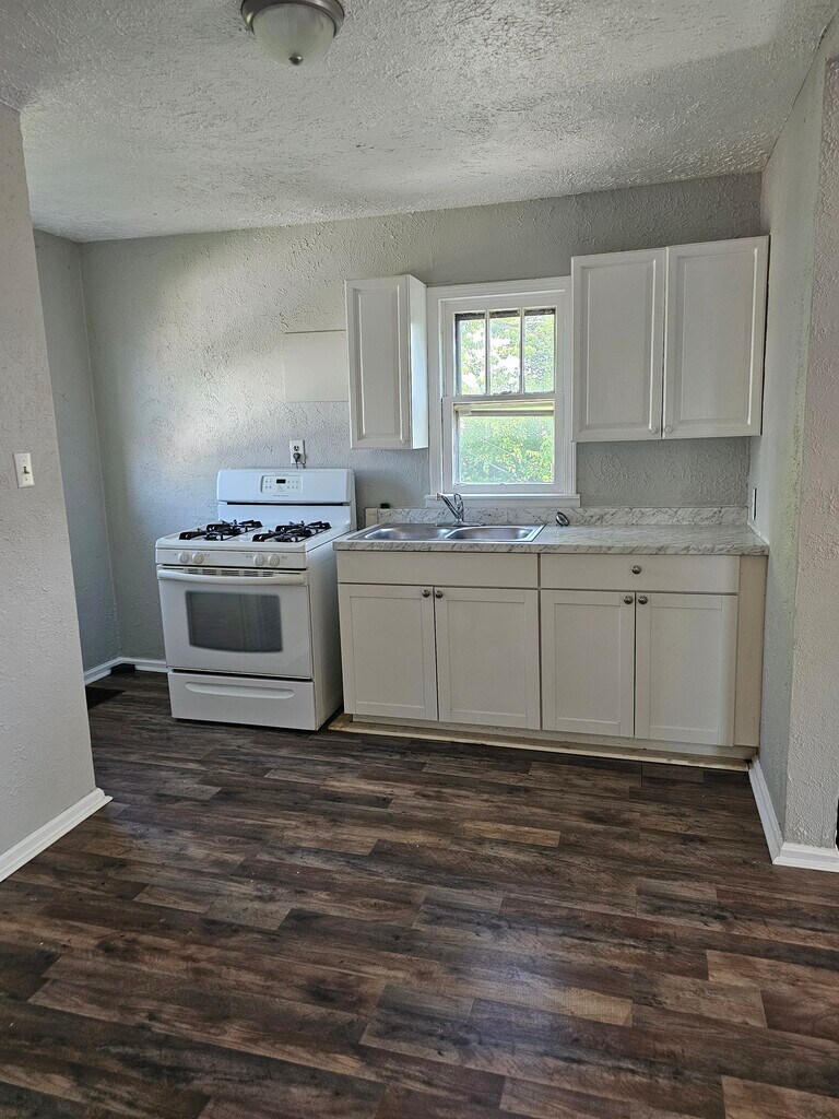 Upstairs 3 bedroom apartment with kitchen appliances provided. Large open living space with LVP flooring. Tub/Shower combo. Lower garage area for storage or workshop. Parking in front of garage or on Jefferson. Walking distance to grocery, entertainment, healthcare, and public transit. Water, sewer, and gas included. Pet permitted. Property has main house sitting on the north side of 29th St. Garage behind has been converted into 2 apartments. Apt A is on the main level. Apt B is accessed through the entry door on the south side of the garage. Parking for the apartments is in the alley or on Jefferson.