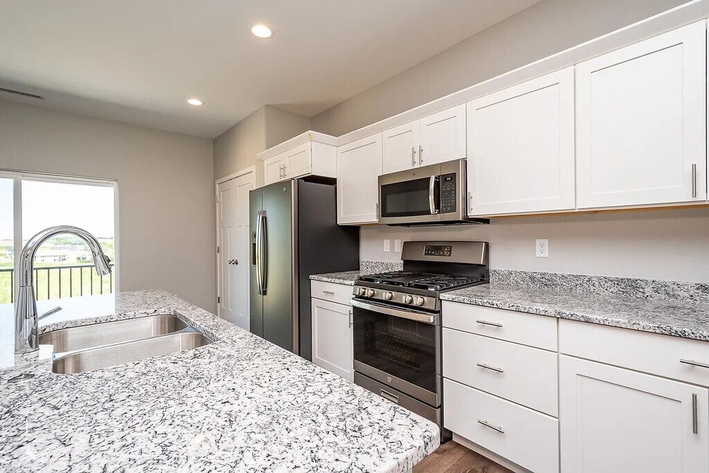 This stunning Tiffin condo offers quick access to I-380 and I-80, making travel throughout the corridor a breeze. Inside, you'll find an open-concept layout connecting the kitchen, dining area, and great room—perfect for entertaining. Enjoy upscale touches like a stone fireplace, tile shower, and high-end finishes throughout. The main floor features a master suite with a double vanity and walk-in closet, plus a second bedroom, full bath, and convenient laundry room. The finished lower level includes a large family room, two additional bedrooms, and a third full bath. A two-car garage connects directly to the kitchen for easy access. Don’t miss this beautifully designed home in a highly desirable location!