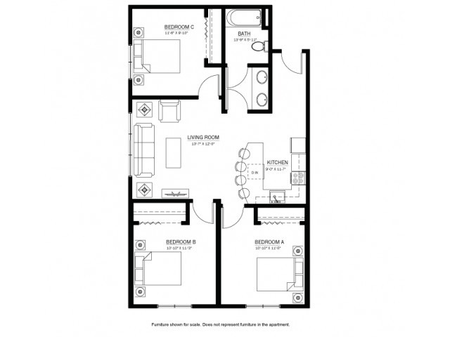 Modelo de apartamento: 3 Bedroom 1 Bath3 Dormitorios, 1 Baño, 950 sq ftNo Disponible![]()