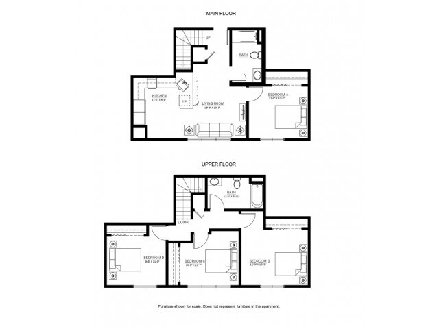 Modelo de apartamento: 4 Bedroom Townhouse 2 Bath4 Dormitorios, 1 Baño, 1350 sq ftNo Disponible![]()