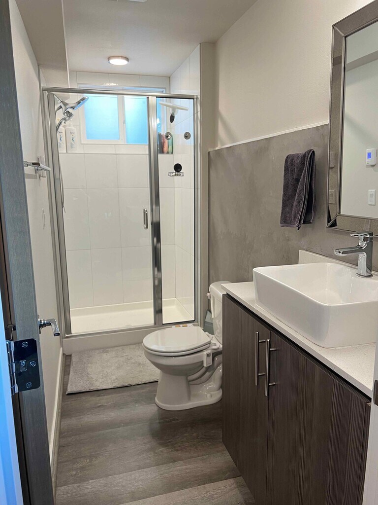 New end unit townhouse on Ballard/Phinney line built in 2020. 2 bedrooms, each with en suite bathrooms, flexible office space or 3rd bed, eat in kitchen with new stainless steel appliances, washer, and dryer. Two mini-split air cooling units, balcony with city views, and covered assigned parking. 2 min. from express bus downtown. Walk to Ballard center and breweries. Great location at 8th and 65th with access to neighborhood bars and restaurants.