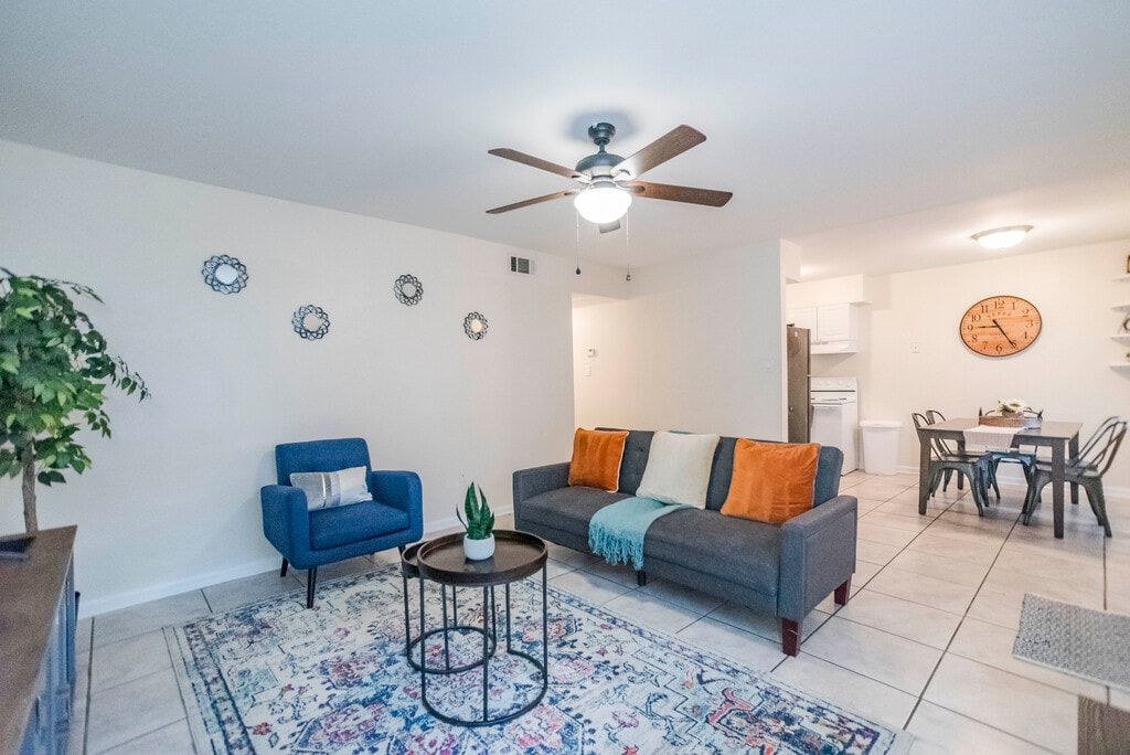 Welcome to Sugar Mill Apartments, your perfect retreat blending comfort and convenience in the Bayou area with a scenic lakefront setting and a beautiful pool. Our 2-bedroom, 1-bathroom units feature smart TVs, high-speed Wi-Fi, and a dedicated parking spot. Located in a friendly neighborhood, you're just 5 minutes from top restaurants, beautiful beaches, and grocery stores. Enjoy nearby museums and the convenience of Gulfport International Airport. Unit Configuration: This apartment is perfect for up to 5 guests and comes fully equipped with blazing-fast internet, smart TV's, and a dedicated desk/table for comfortable work. Experience both elegance and comfort in every detail. - Living Room: Relax in a stylish living area featuring a comfortable sofa bed, a dining space, and elegant, cozy furnishings. - Kitchen: Enjoy a fully equipped kitchen designed for all your culinary needs. - Bedrooms: Two beautifully appointed bedrooms, each with a queen bed, ensure a restful stay. - Bathroom: One spacious, well-designed bathroom for your convenience.