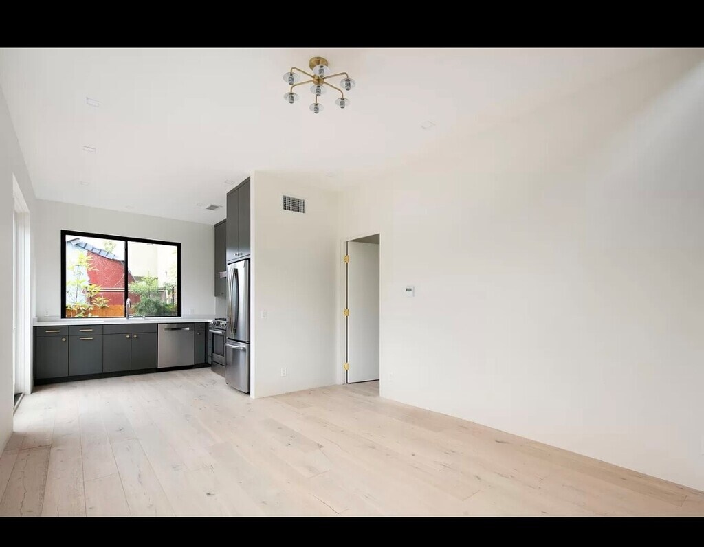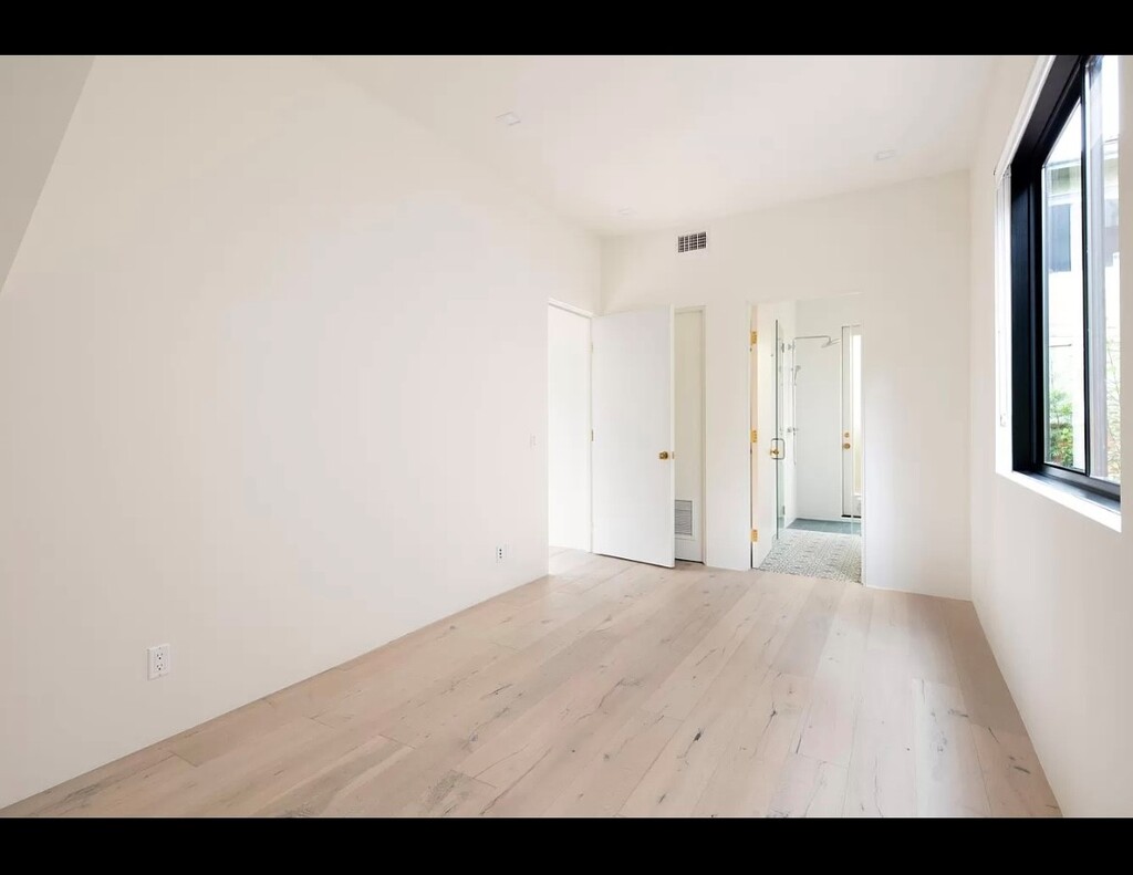 Next To Abbott Kinney! Bright and Modern stand-alone 2 bed, 2 bath townhouse style unit in prime Venice, Designed with impeccable attention to detail, this unit seamlessly integrates the electric Venice vibe with contemporary finishes throughout. The kitchen features custom cabinetry, Bosch range/oven, Caesarstone counters, and beautiful oversized window that opens out to the wrap-around deck. Primary bedroom on the 2nd floor has two closets w/ample storage, and en suite bathroom w/intricate encaustic tile flooring, dual sink vanity and walk-in shower. The top floor leads to an expansive rooftop deck w/breathtaking mountain and city views. The unit is complete w/central A/C, recessed lighting, engineered oak wood floors, in-unit laundry and outdoor shower.