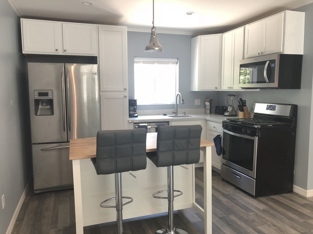 Permitido casa de residentes, a solo 3 años de edad. Camina a través de una puerta de entrada privada que conduce a este moderno y acogedor estudio estilo hogar. Todo lo que necesitas está aquí mismo. Flamantes electrodomésticos: cocina a gas, horno, horno de microondas, triturador de basura y lavaplatos. Flamante, personalizado, hermosas encimeras de cuarzo llegan todos juntos. ¿Tienes hambre? Un enorme refrigerador que cuenta con un dispensador de hielo/dispensador de agua y lo espera junto con cualquier ollas y sartenes que necesitas, cafetera, cuchillo encimera de madera maciza, tostadora, licuadora, utensilios y vajilla de cristal/comedor. Flamante, a medida, gabinetes de cocina de cierre suave, te ofrece una gran cantidad de espacio para guardar de distancia de todas tus necesidades de cocina que incluye una despensa amplia para que nunca pasará hambre. Un de usos múltiples de la isla de la cocina te espera para la preparación de alimentos, comer tus comidas o configurar tu computadora portátil y relajarte. Usan tu propio calentador de agua sin tanque mientras disfruta de una ducha en tu moderna y cuarto de baño a medida. Duérmete en una acogedora y cómoda cama Queen con nueva ropa de cama y almohadas mullidas. Área de almacenaje con cajones de desplegable en tu cama, además de un amplio armario. Disfruta de entretenimiento en tu propio la pared, TV con pantalla LCD con Direct TV, reproductor de Blue Ray y acceso a Internet de alta velocidad. Escápate de tu piscina de días de California con un toque de tu propia con control remoto, poderosa, casi nada al respecto, mini-split aire acondicionado/calefacción o disfruta de la piscina a nivel, a solo pasos de tu puerta corrediza. Si tu un baño lo prefiere, despéjate en el relajante jacuzzi. Los jardines comunes incluyen también un nuevas parrillas para barbacoa, árboles frutales, jardín, lavandería en el lugar gratuito y una amplia entrada para estacionamiento fácil. En el camino? A minutos de distancia de la 170HWY y 101 AUTOPISTAS, LA Valley College, de North Hollywood Metro Line y Busway, y cerca de restaurantes, supermercados, tiendas y gimnasios. El alquiler es de $2.150,00/month, incluidos los servicios públicos. Esto incluye todos los servicios públicos, Internet, televisión por cable, jardinero, servicio de piscina y muebles para el hogar. Llama/email/text para cualquier pregunta/preguntas! Consulta para Marie. *Verificación de antecedentes y de crédito obligatoria para la mudanza*