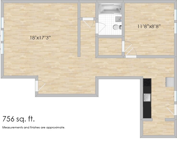 Modelo de apartamento: 642 Harrison E2 Dormitorios, 1 Baño, 831 sq ftNo Disponible![]()